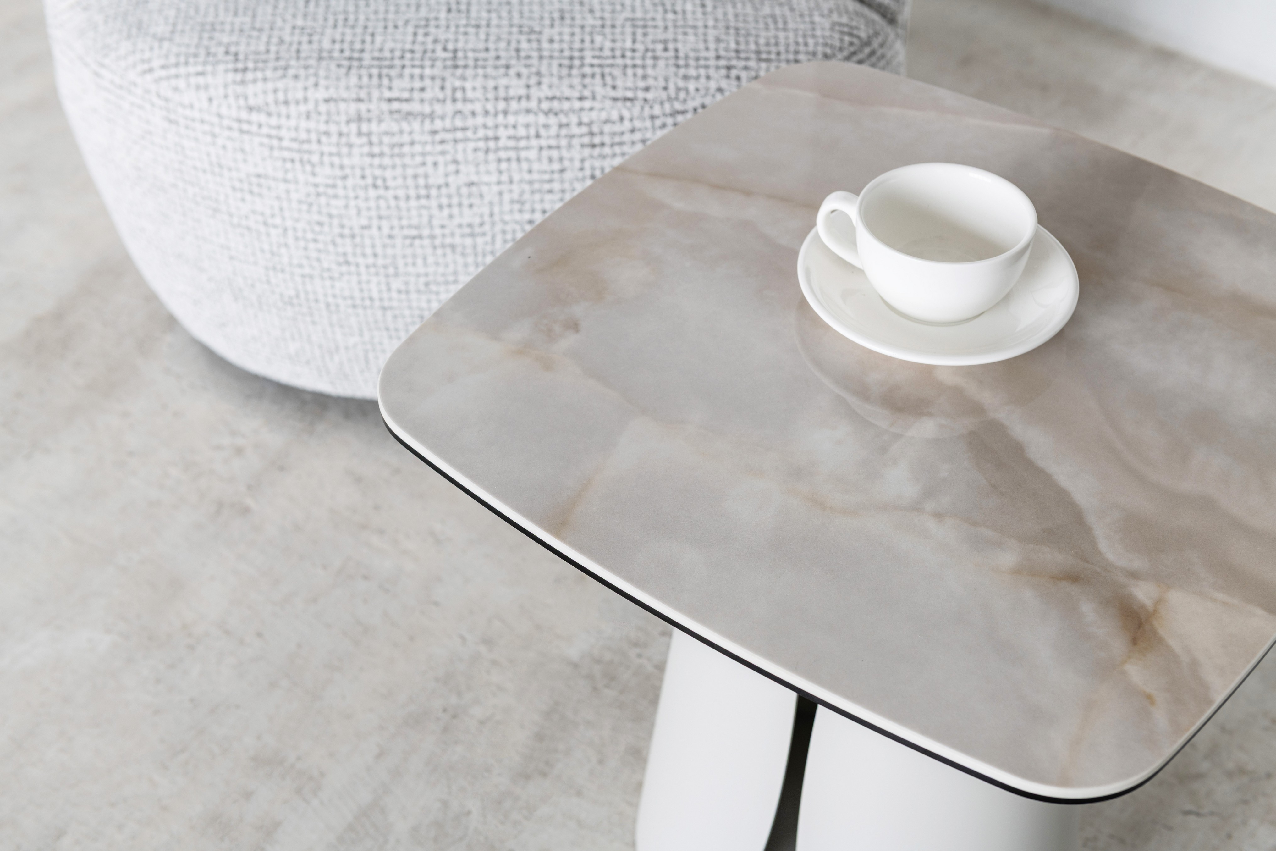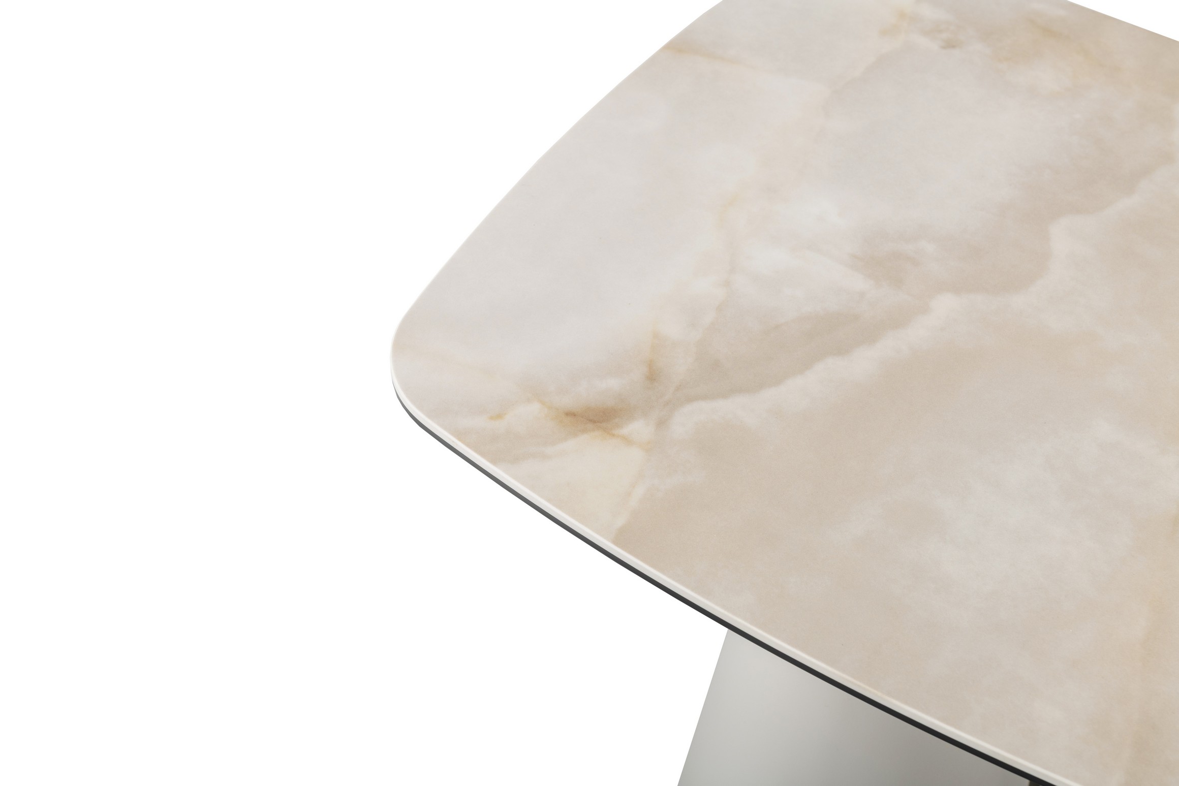 Кавовий стіл «Лунаріо» айворі онікс + айворі створений, щоб стати витонченим акцентом у вітальні чи зоні відпочинку. Його квадратна стільниця з глянцевої кераміки у відтінку айворі онікс зачаровує природним малюнком каменю та глибоким блиском поверхні.