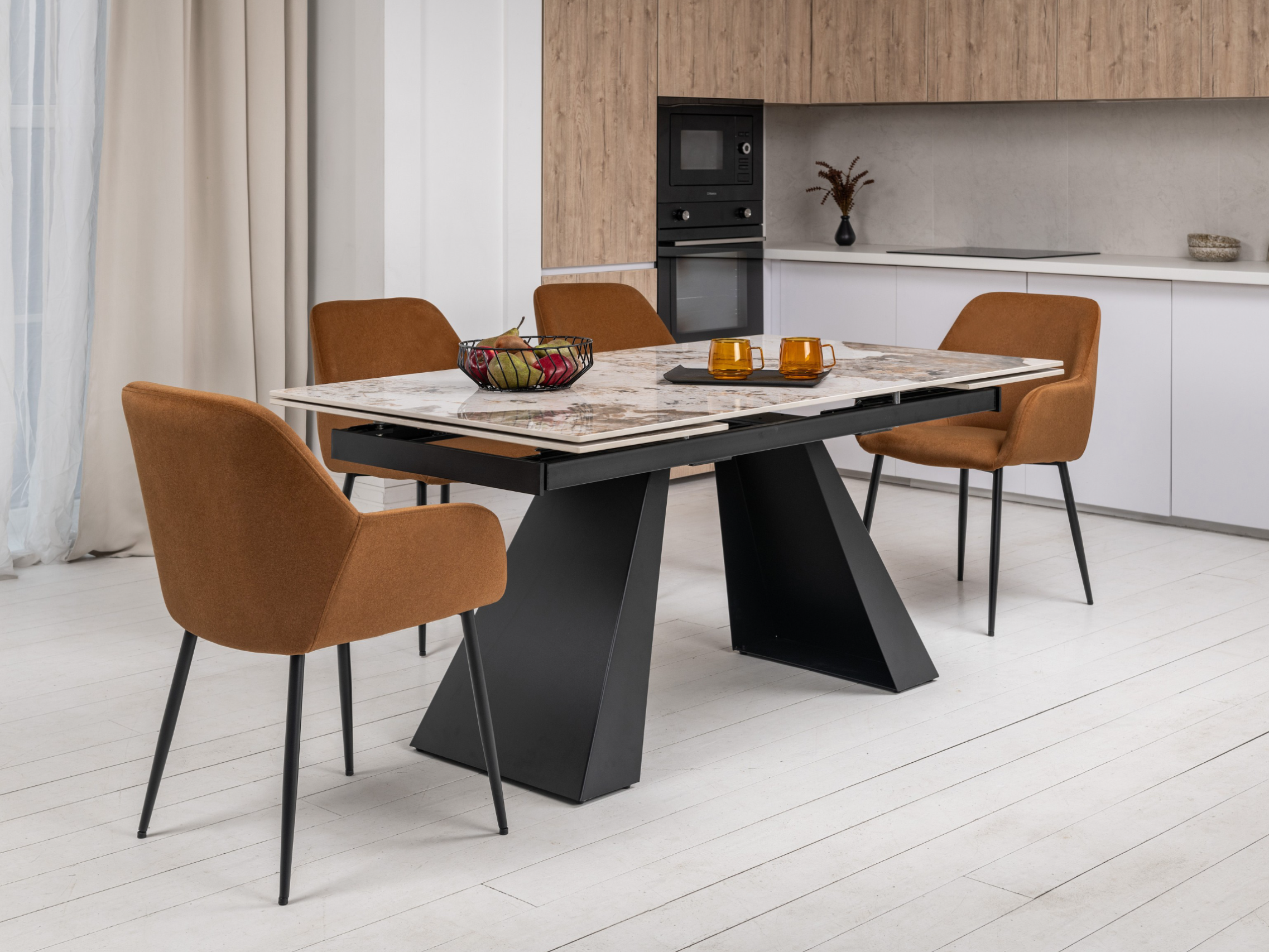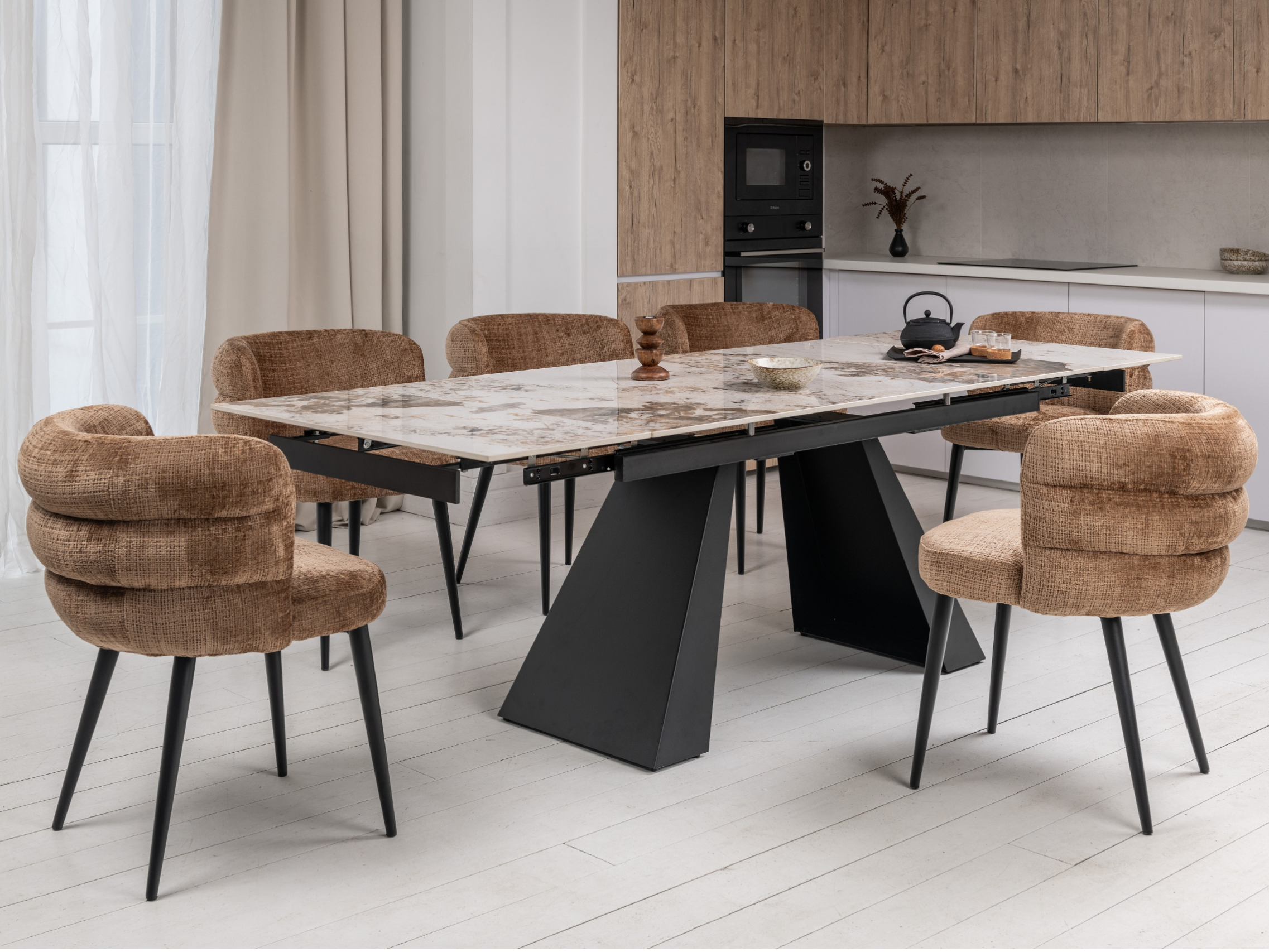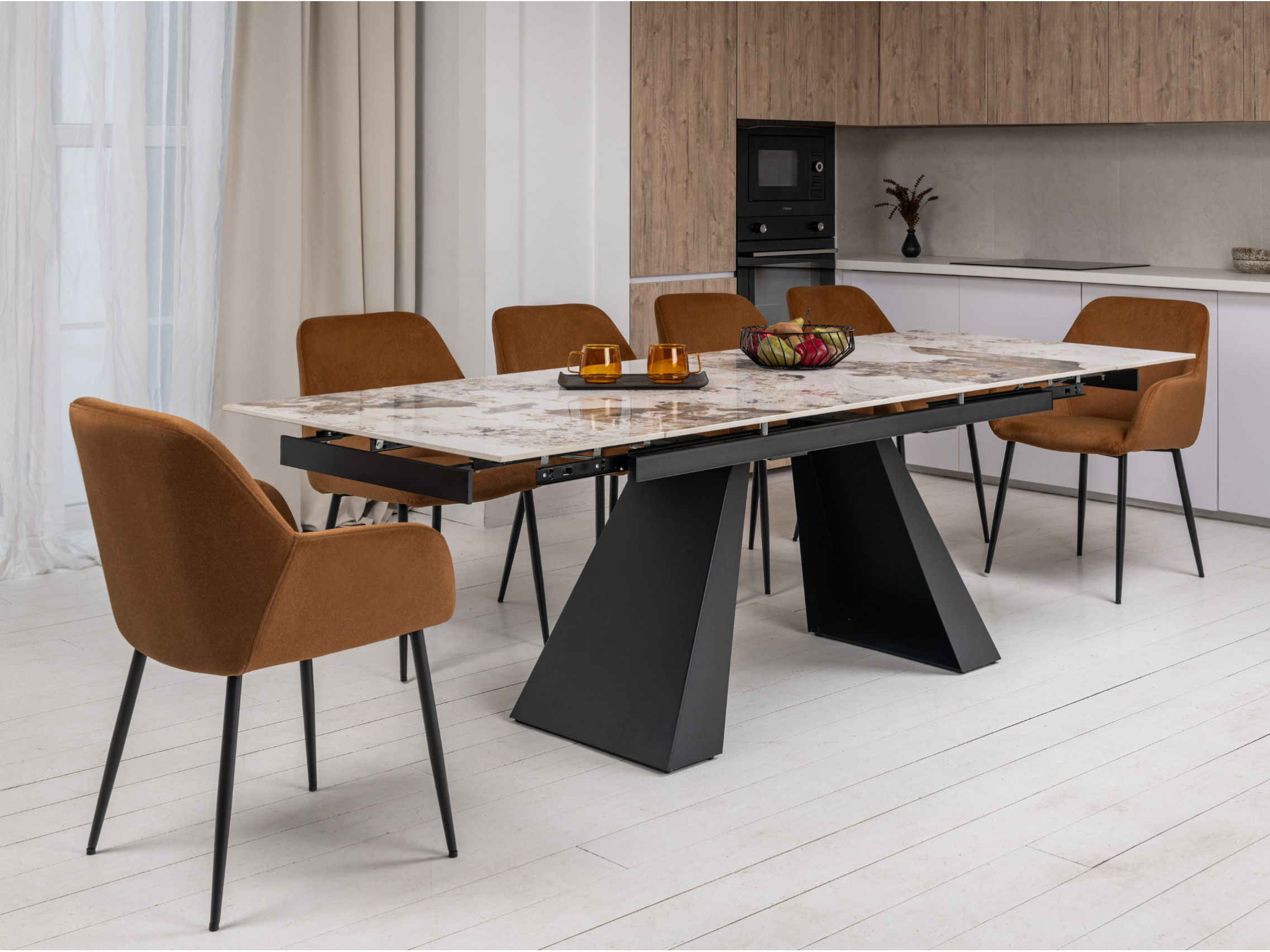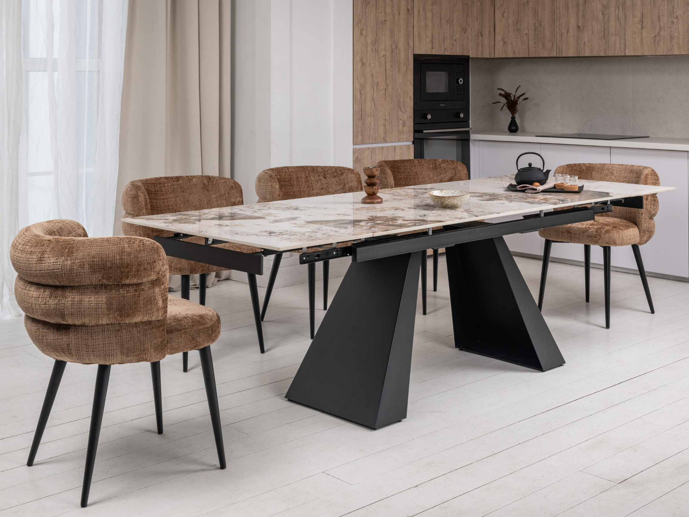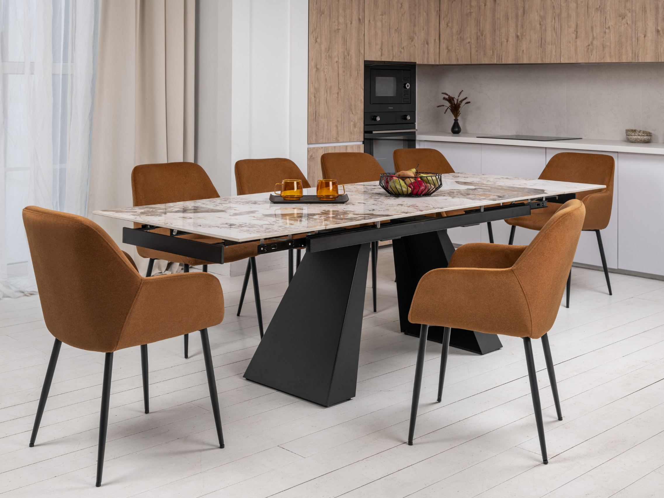Прямокутна форма та боковий механізм розкладки дозволяють легко збільшувати довжину стола з 160 до 240 см, забезпечуючи місце для великої компанії.