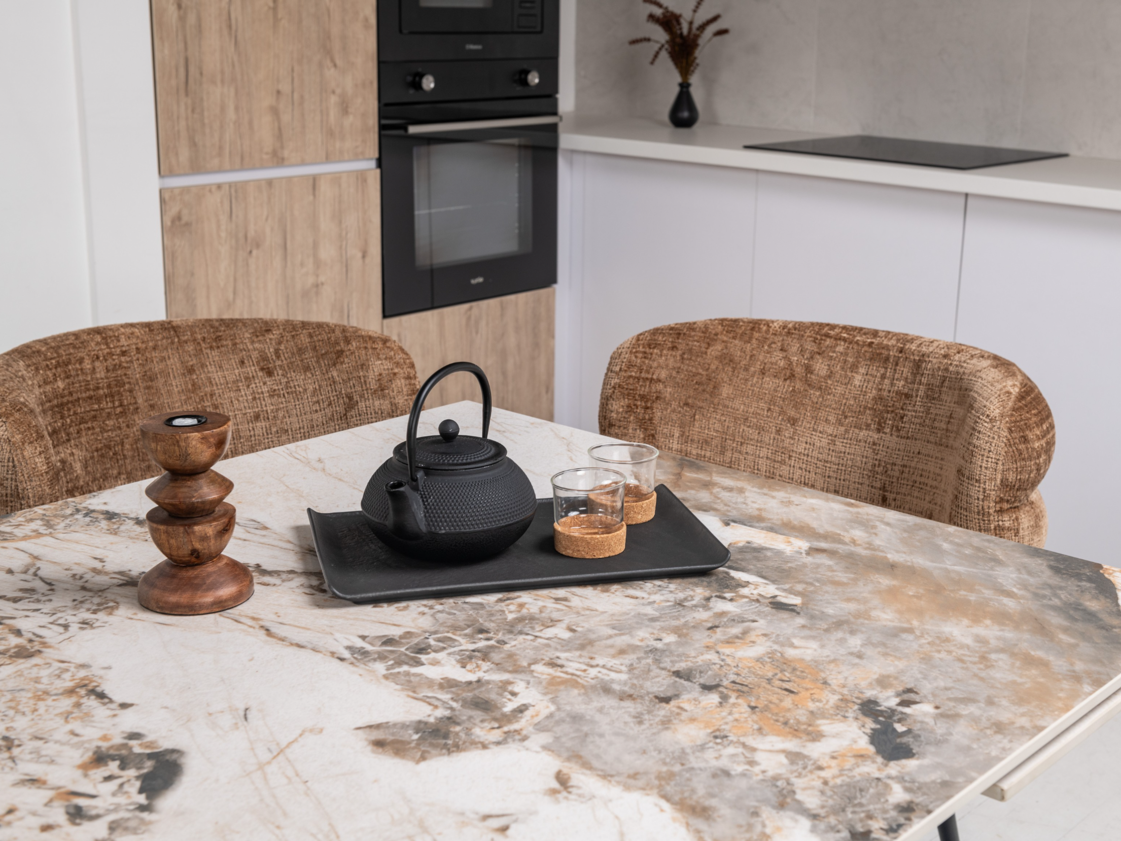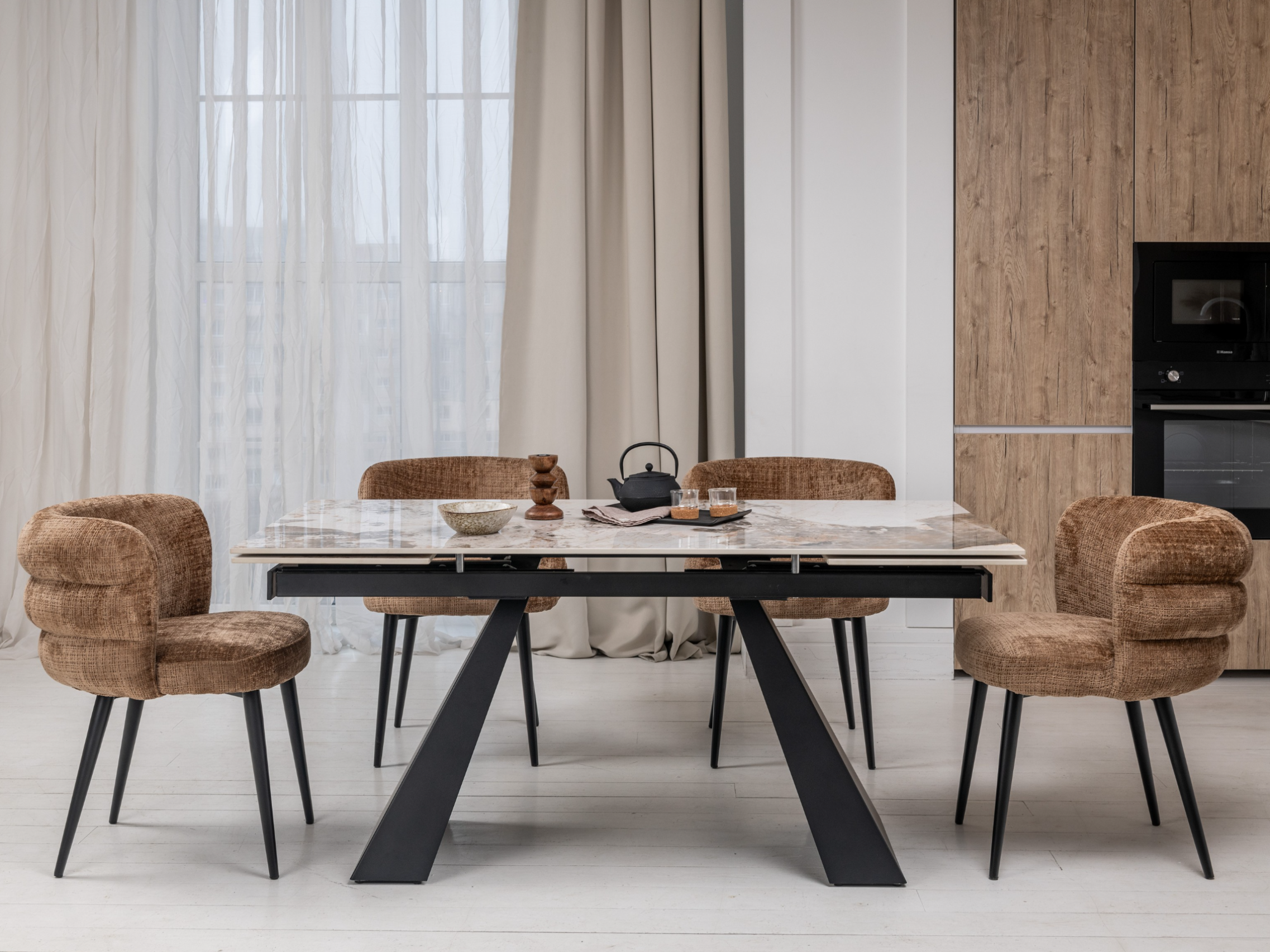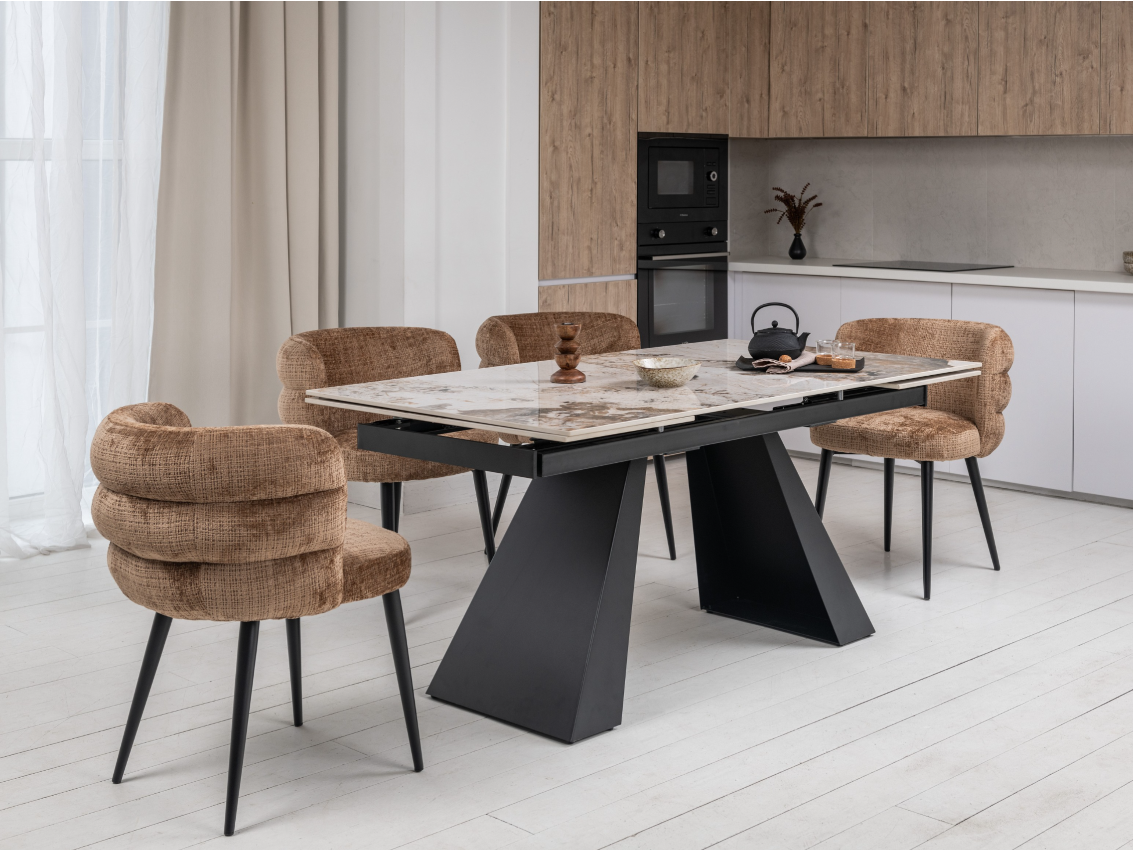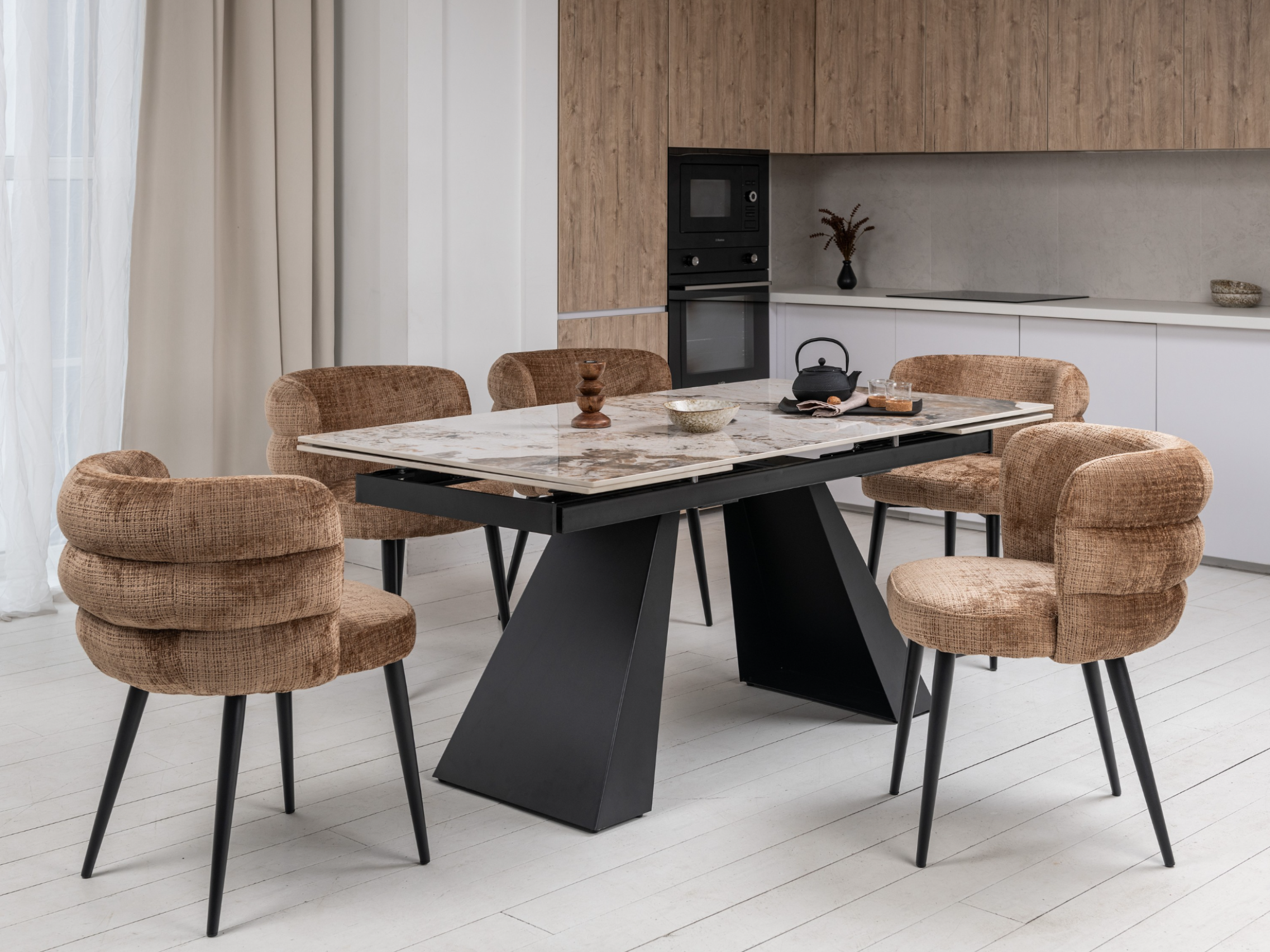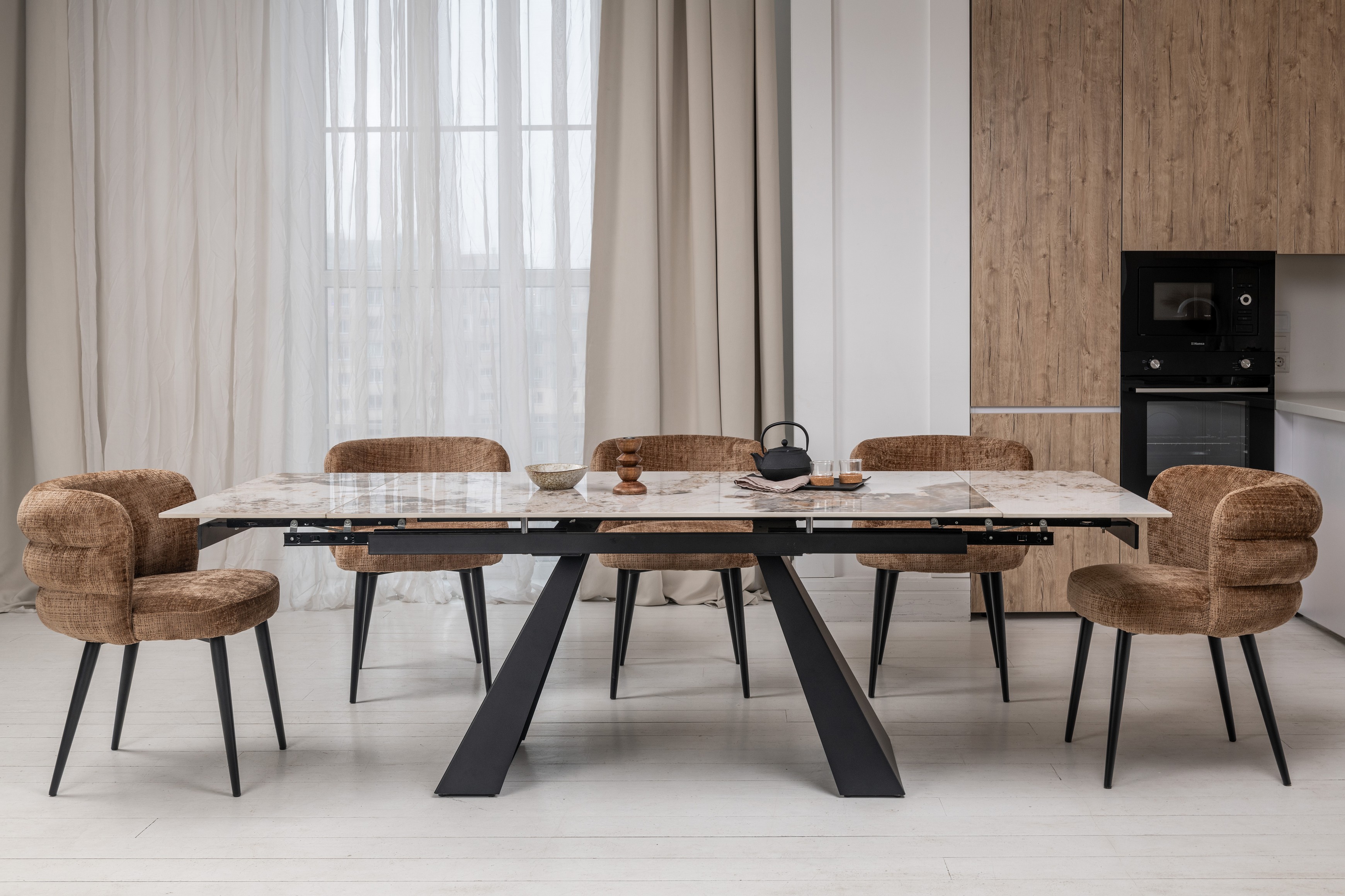 Прямокутна форма та боковий механізм розкладки дозволяють легко збільшувати довжину стола з 160 до 240 см, забезпечуючи місце для великої компанії.