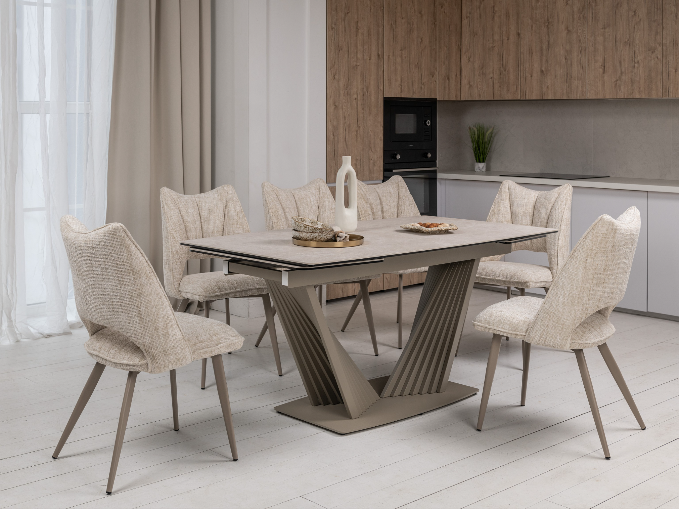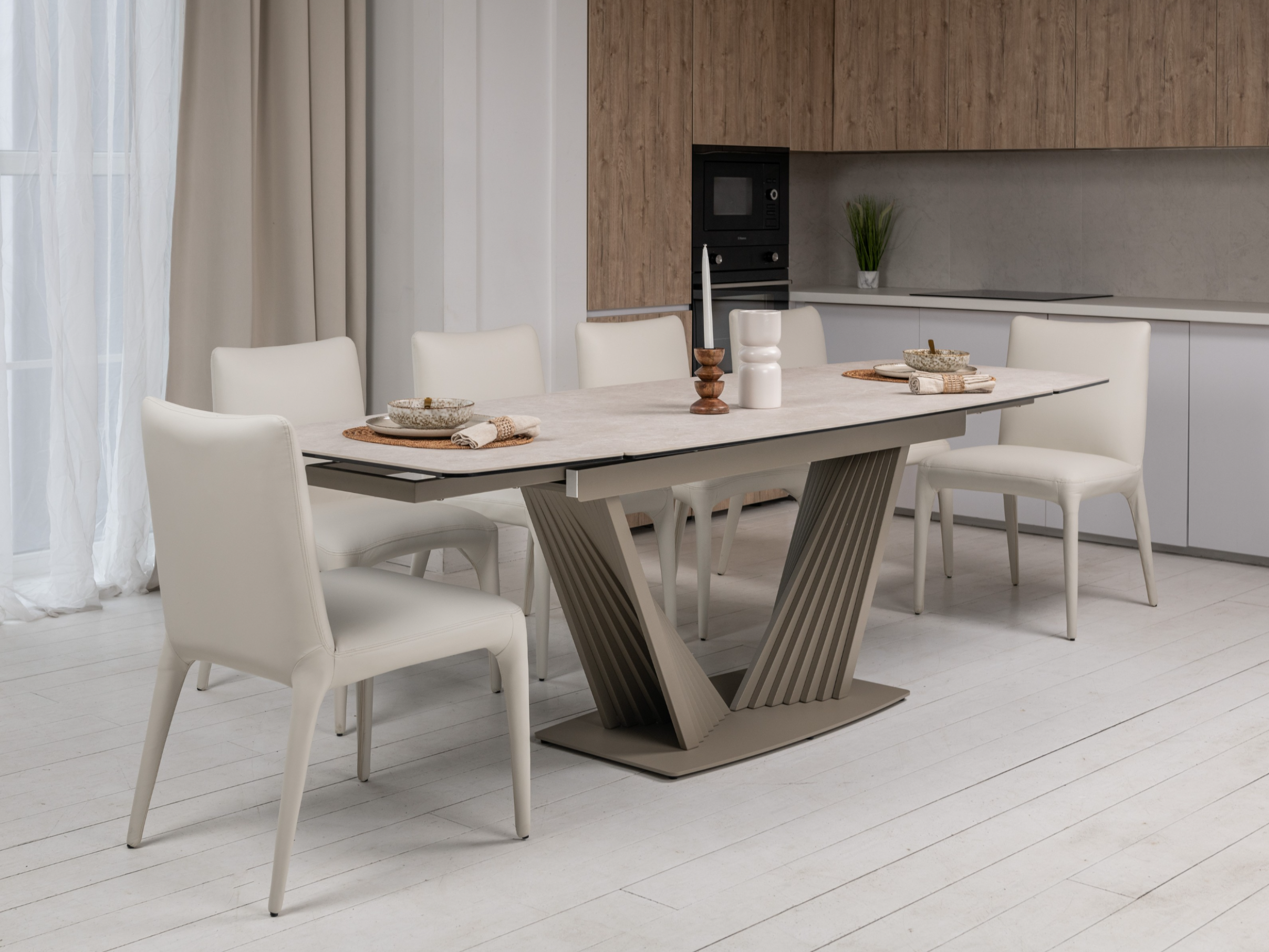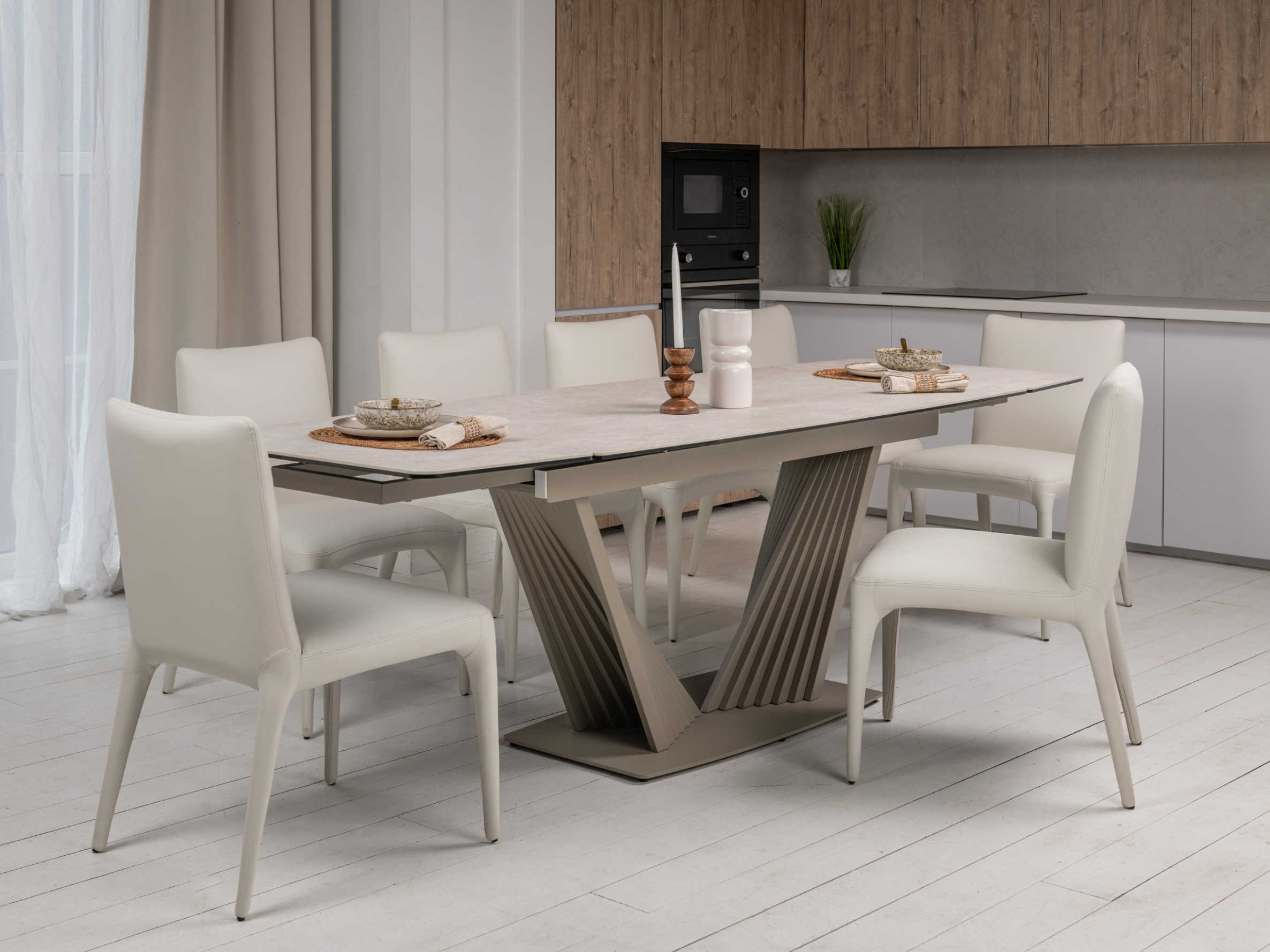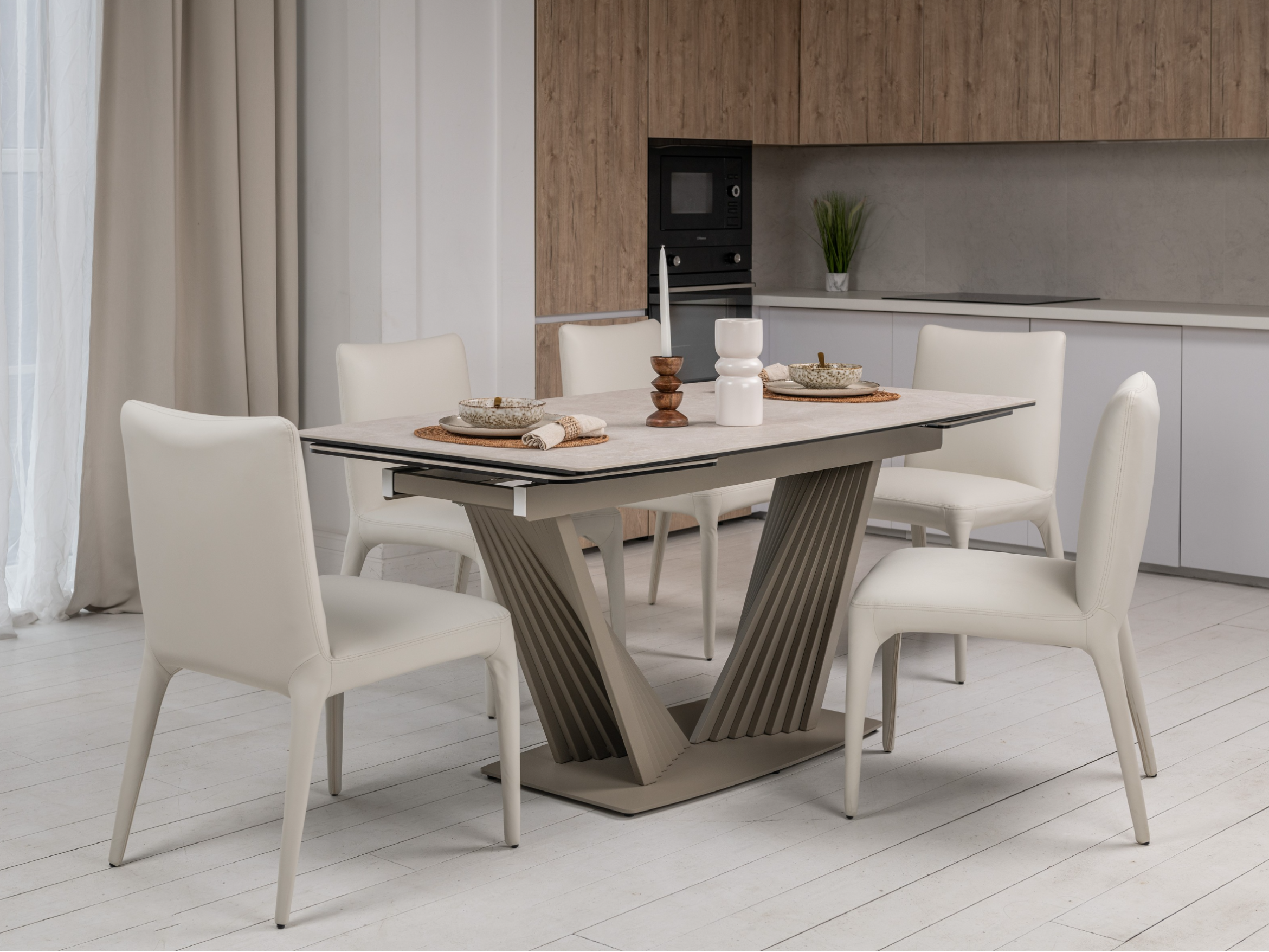 Матова керамічна поверхня потребує мінімального догляду – достатньо простої очистки, що робить стіл практичним у повсякденному використанні.