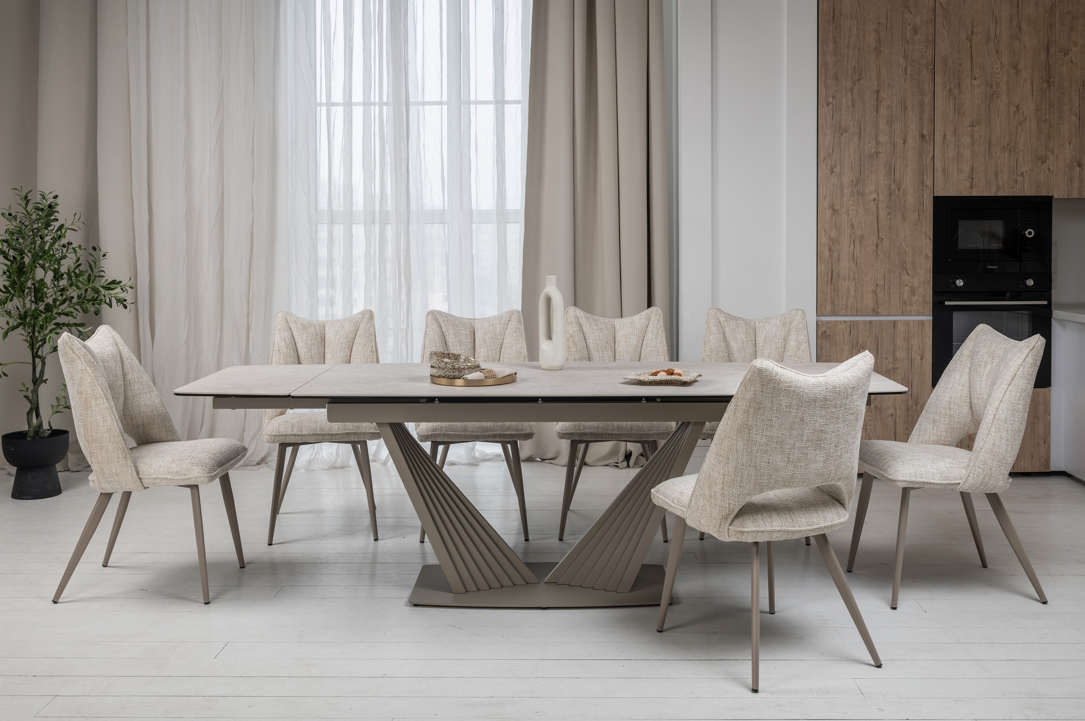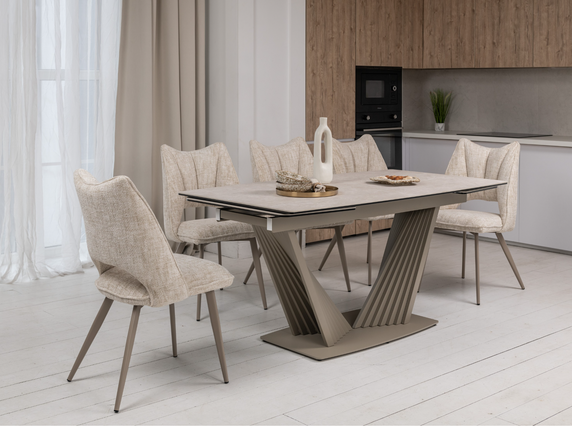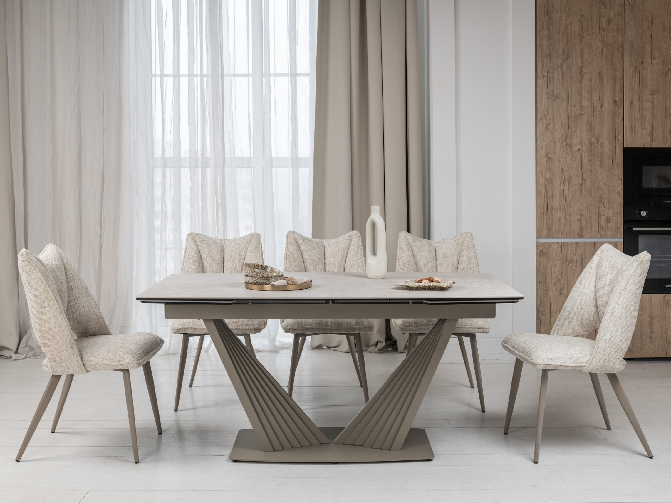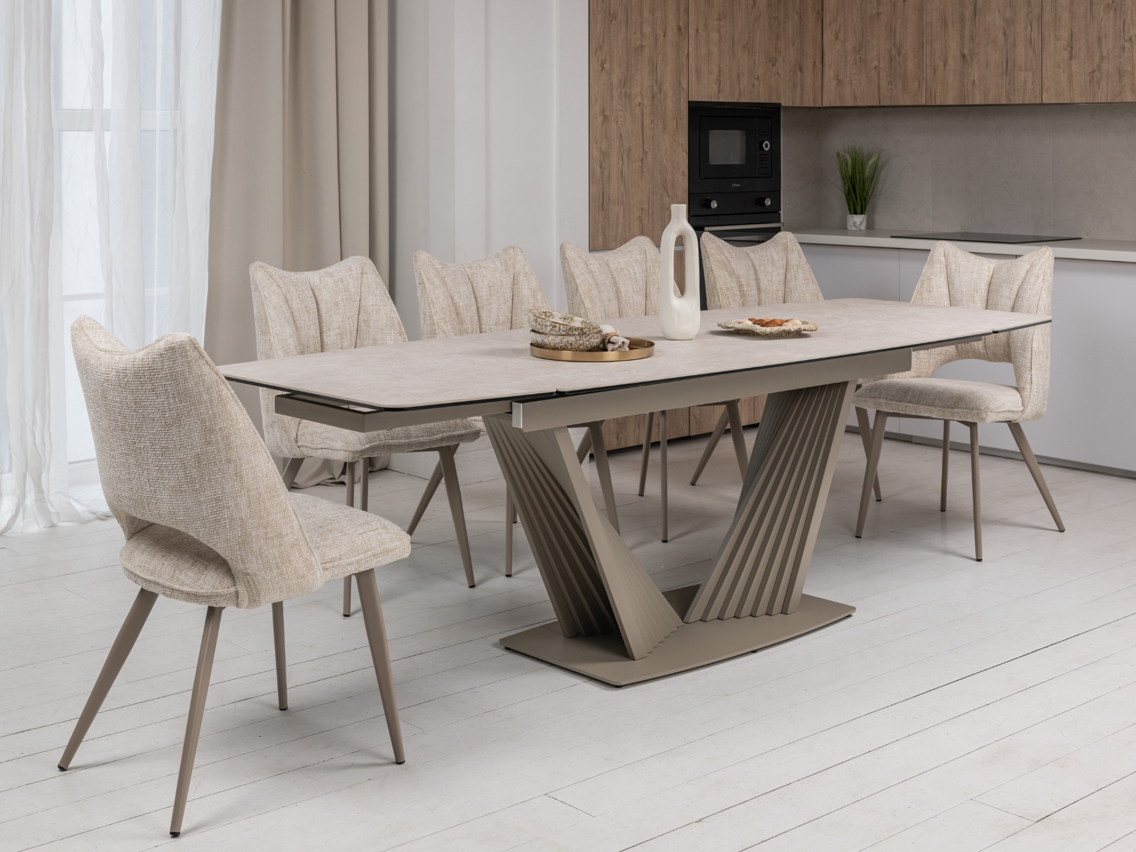 Матова керамічна поверхня потребує мінімального догляду – достатньо простої очистки, що робить стіл практичним у повсякденному використанні.