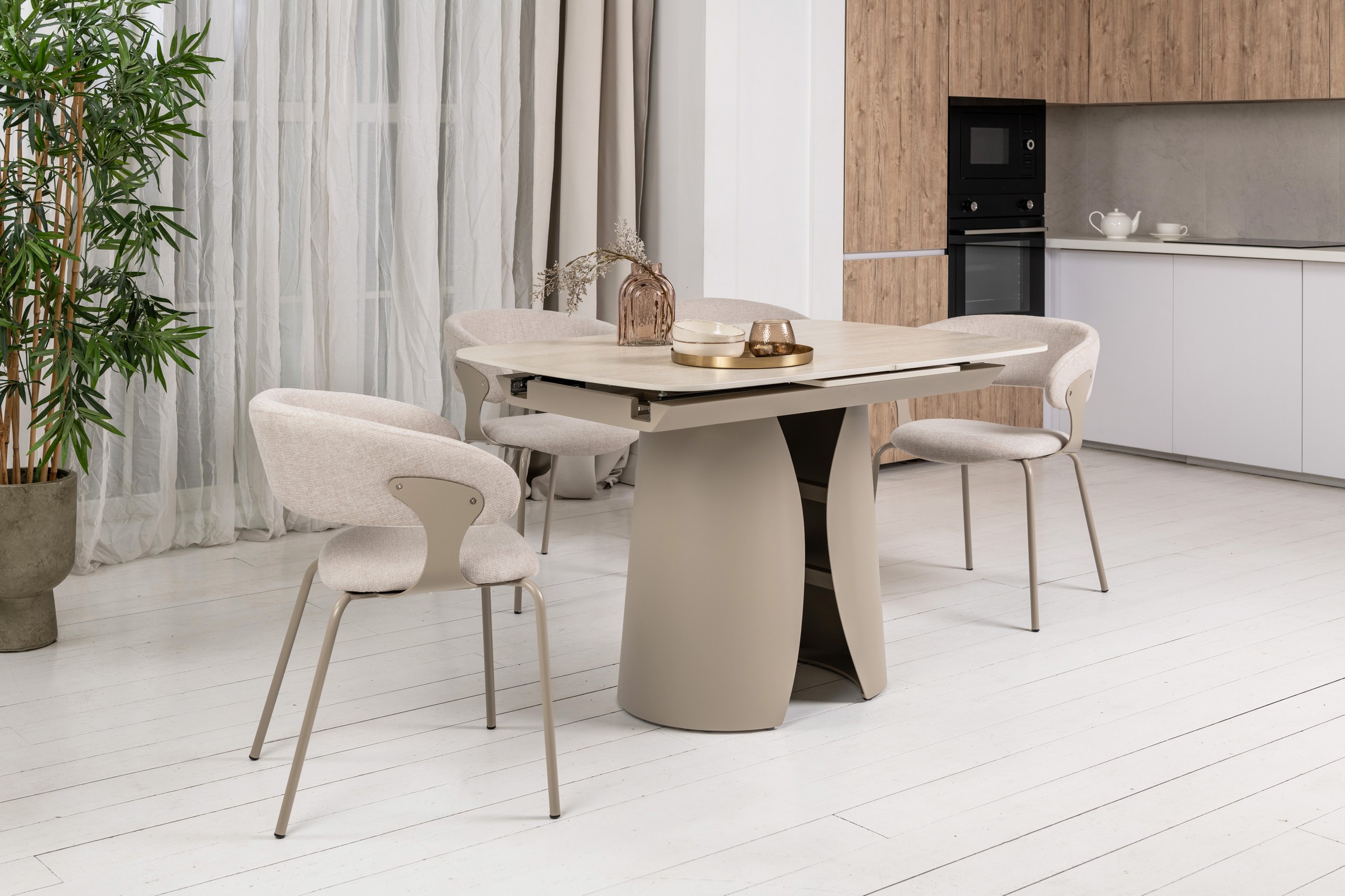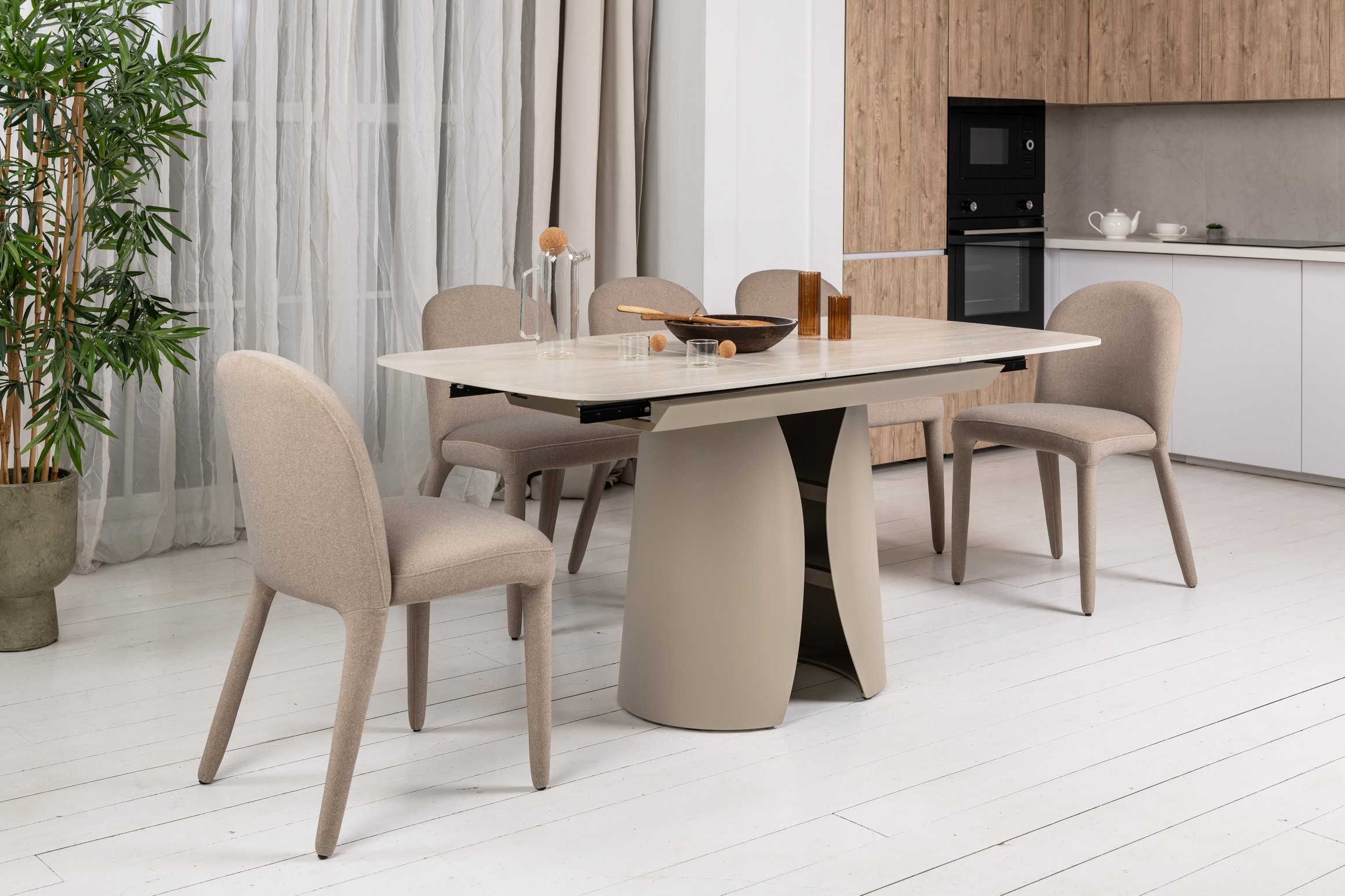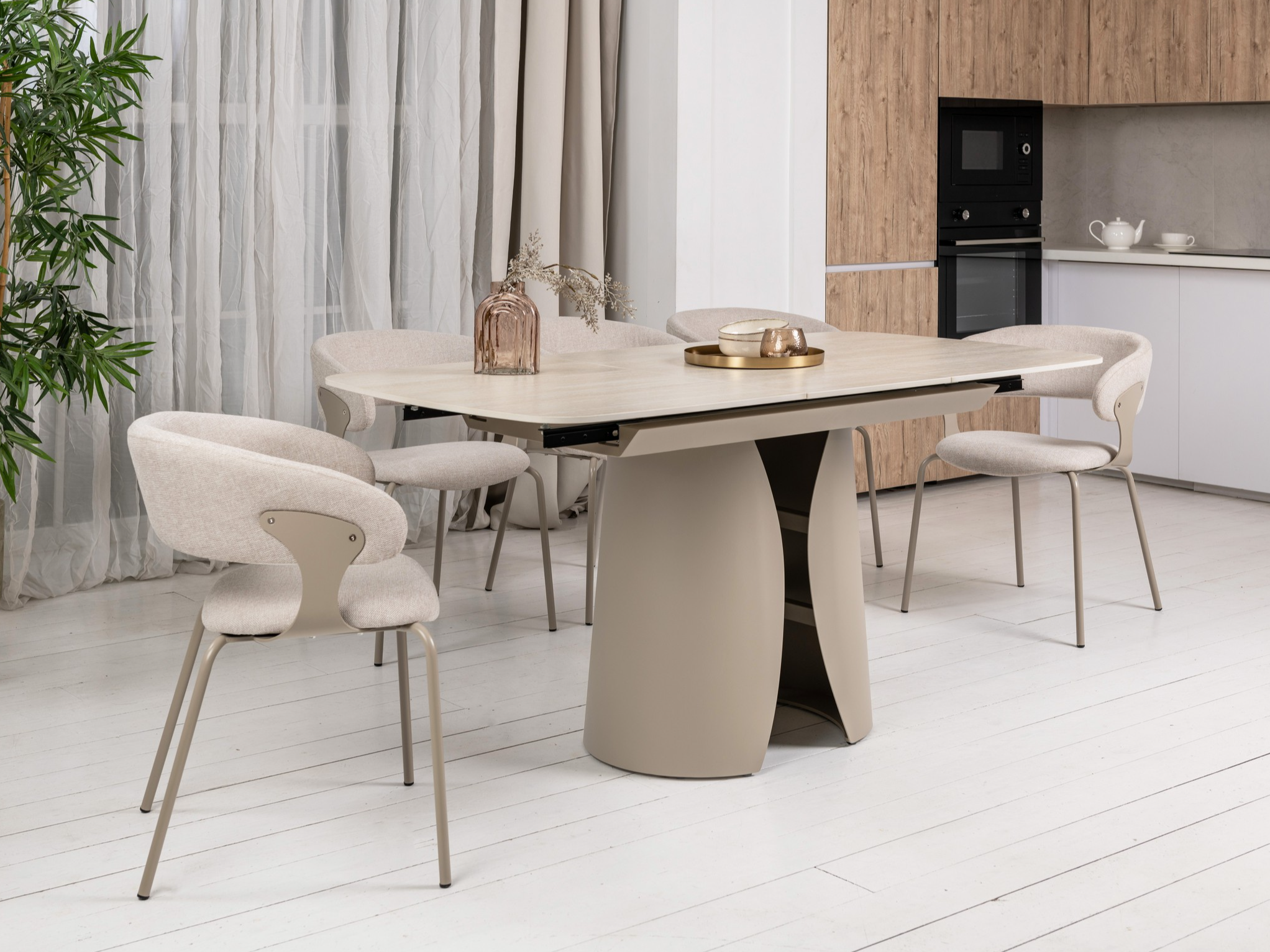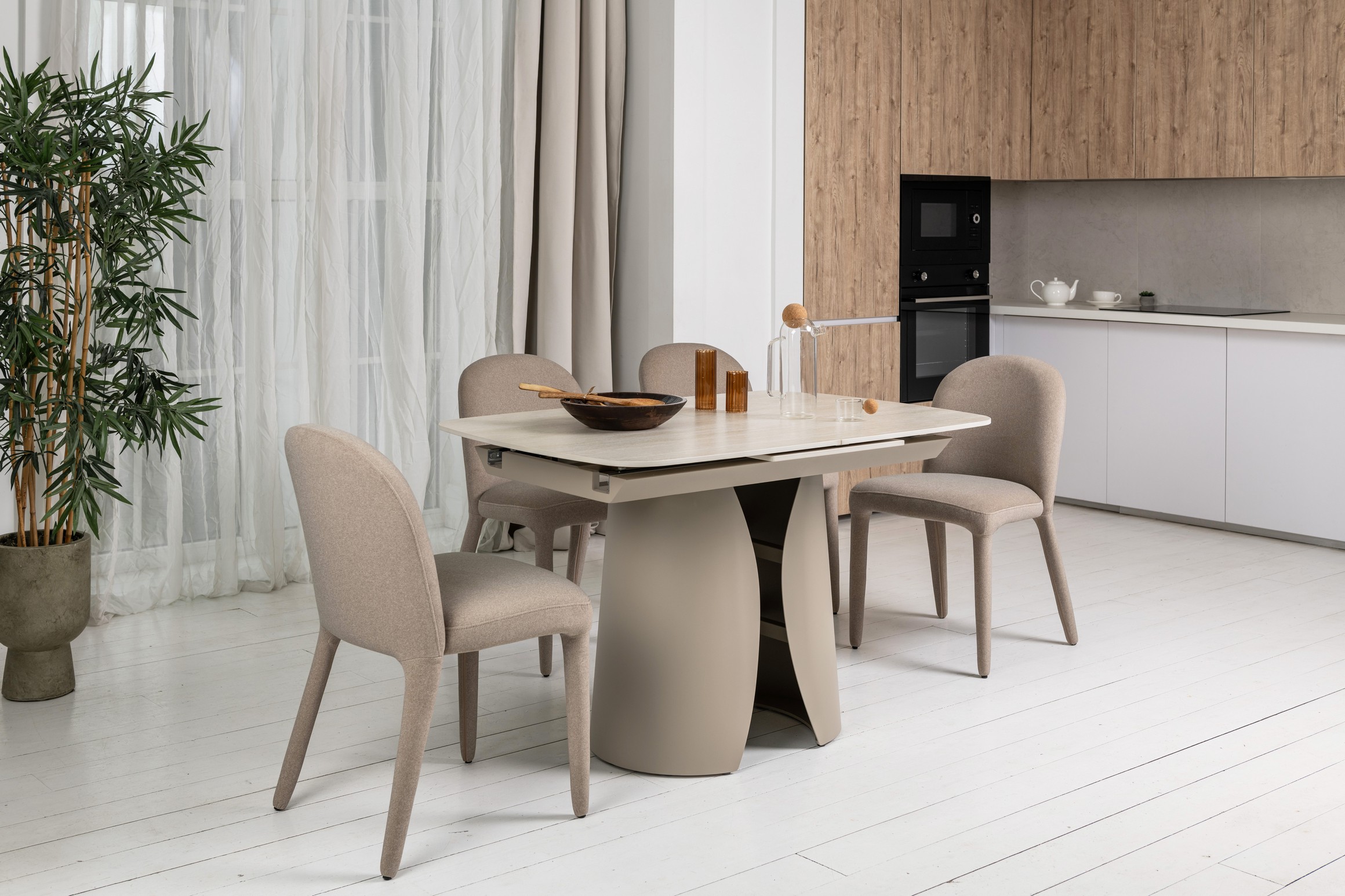 Керамічний стіл Лунаріо TML-1322 крема марфіль + капучино — це вишукане поєднання природної краси та сучасних технологій. Його матова стільниця в теплій палітрі крема марфіль нагадує текстуру натурального каменю: ніжні відтінки створюють атмосферу затишку та гармонії, а водночас надають інтер’єру благородного шарму. Поверхня не лише ефектна, а й практична — стійка до подряпин, високих температур і проста у догляді.