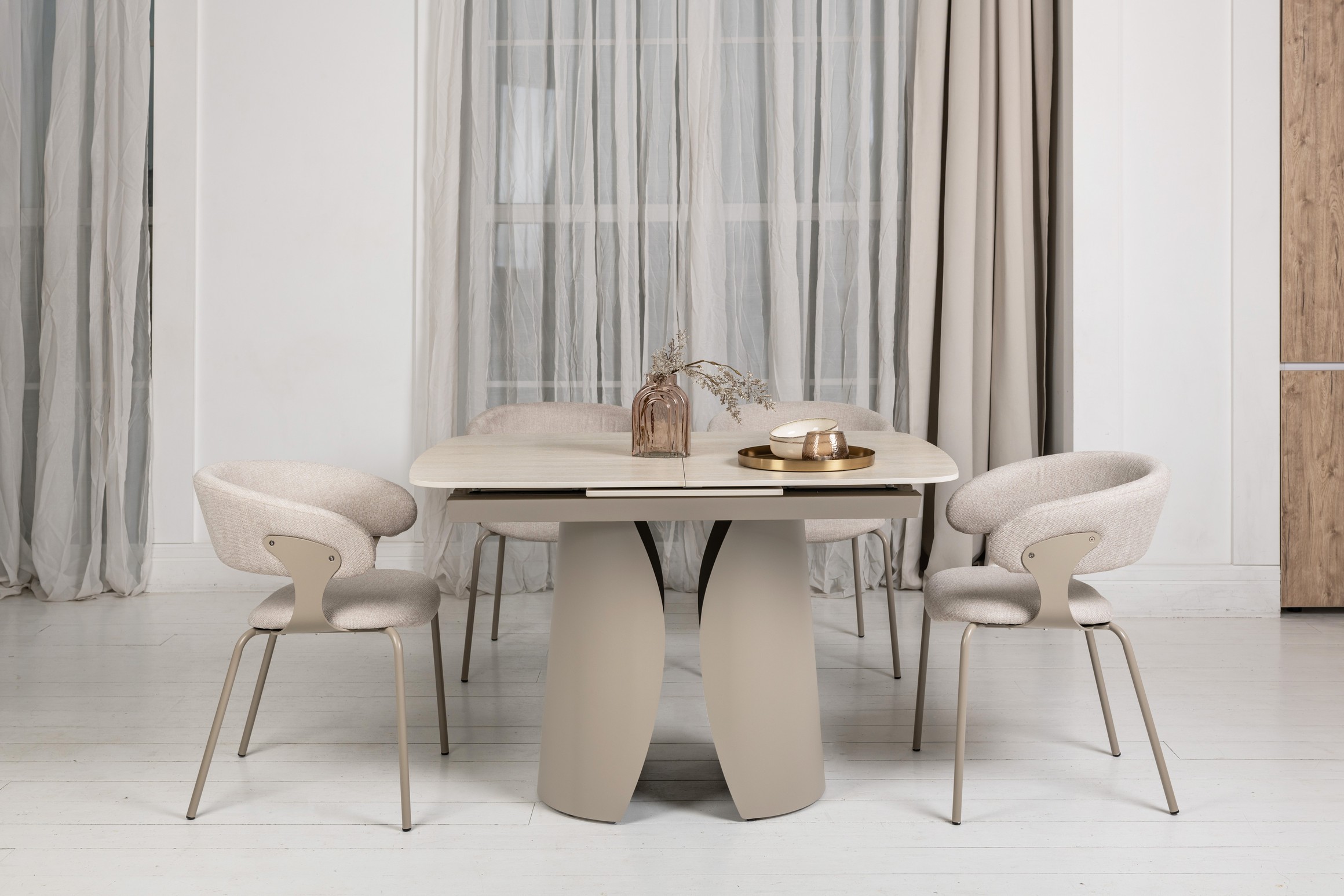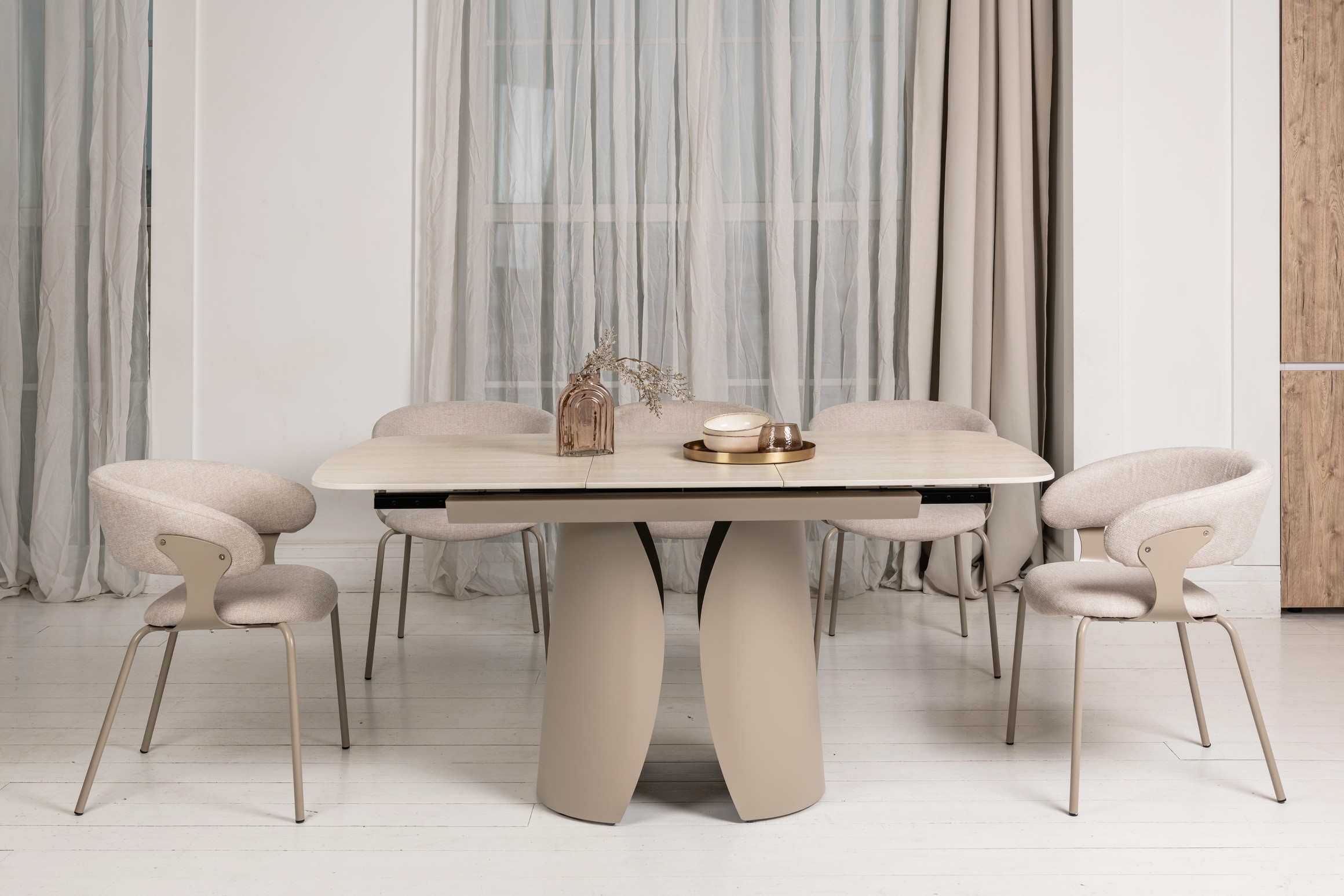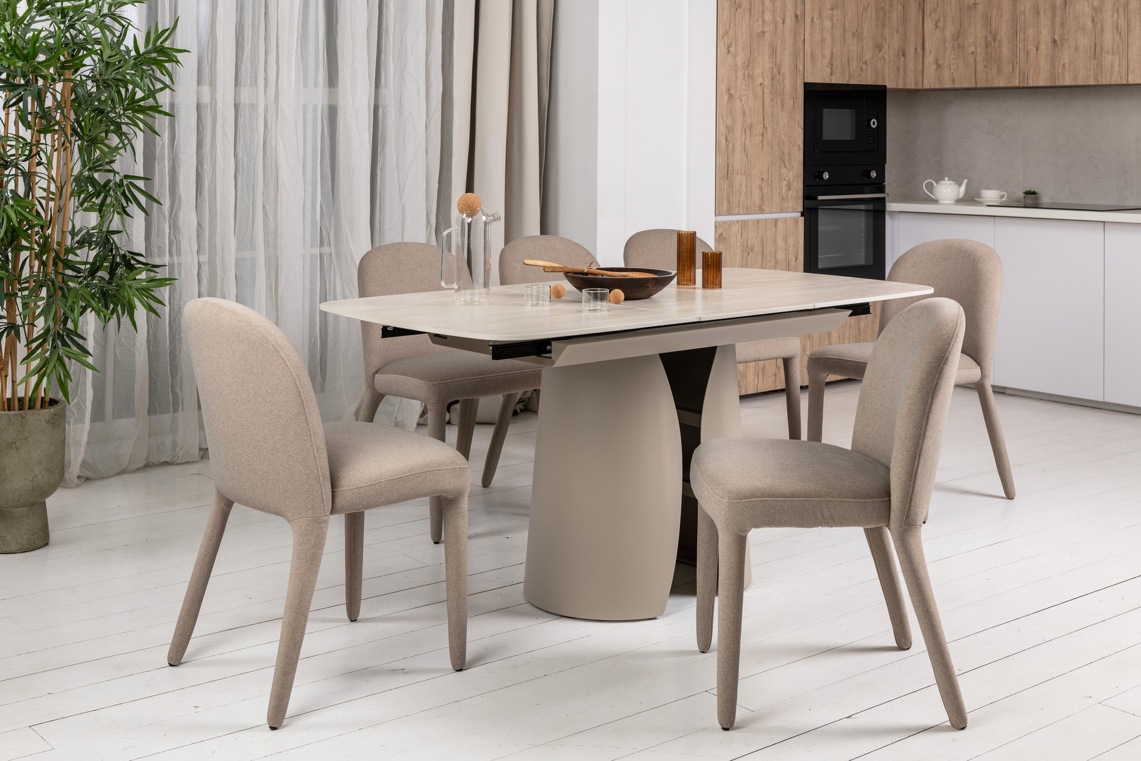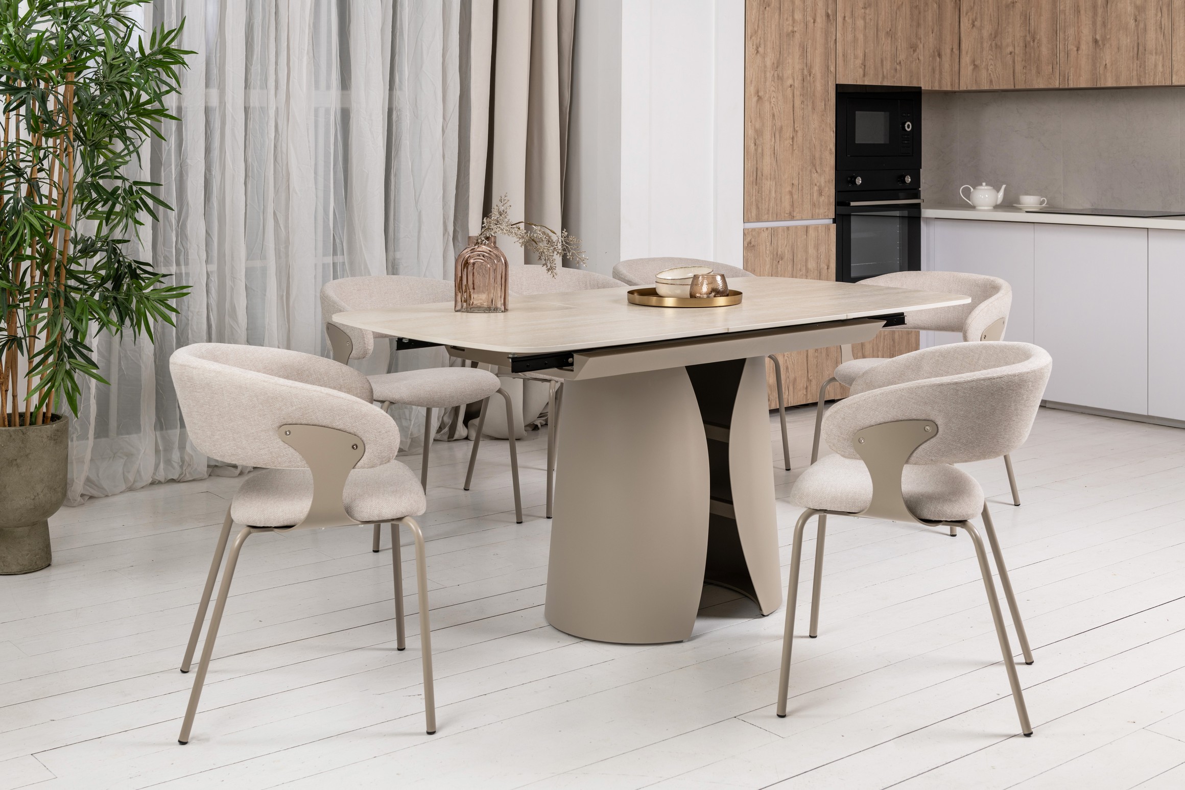 Керамічний стіл Лунаріо TML-1322 крема марфіль + капучино — це вишукане поєднання природної краси та сучасних технологій. Його матова стільниця в теплій палітрі крема марфіль нагадує текстуру натурального каменю: ніжні відтінки створюють атмосферу затишку та гармонії, а водночас надають інтер’єру благородного шарму. Поверхня не лише ефектна, а й практична — стійка до подряпин, високих температур і проста у догляді.