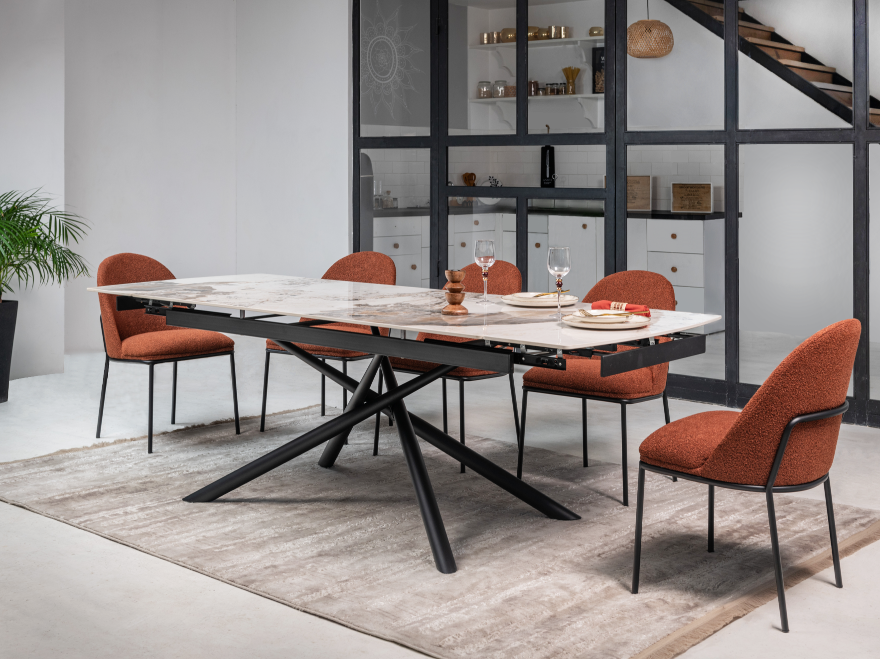 Керамічний стіл Піно TML-1200 патагонія + чорний — стильний і практичний розкладний стіл із глянцевою керамічною стільницею кольору "патагонія". Цей відтінок надає столу елегантного вигляду завдяки природним прожилкам, що поєднують нейтральні кольори.