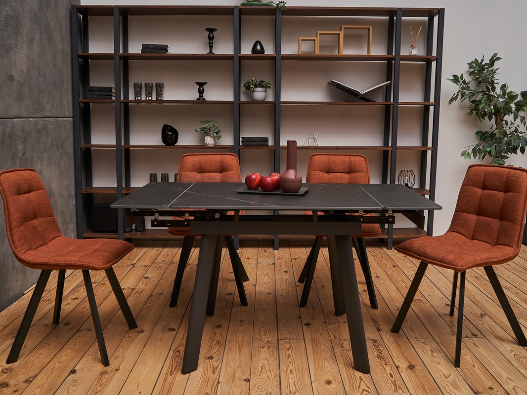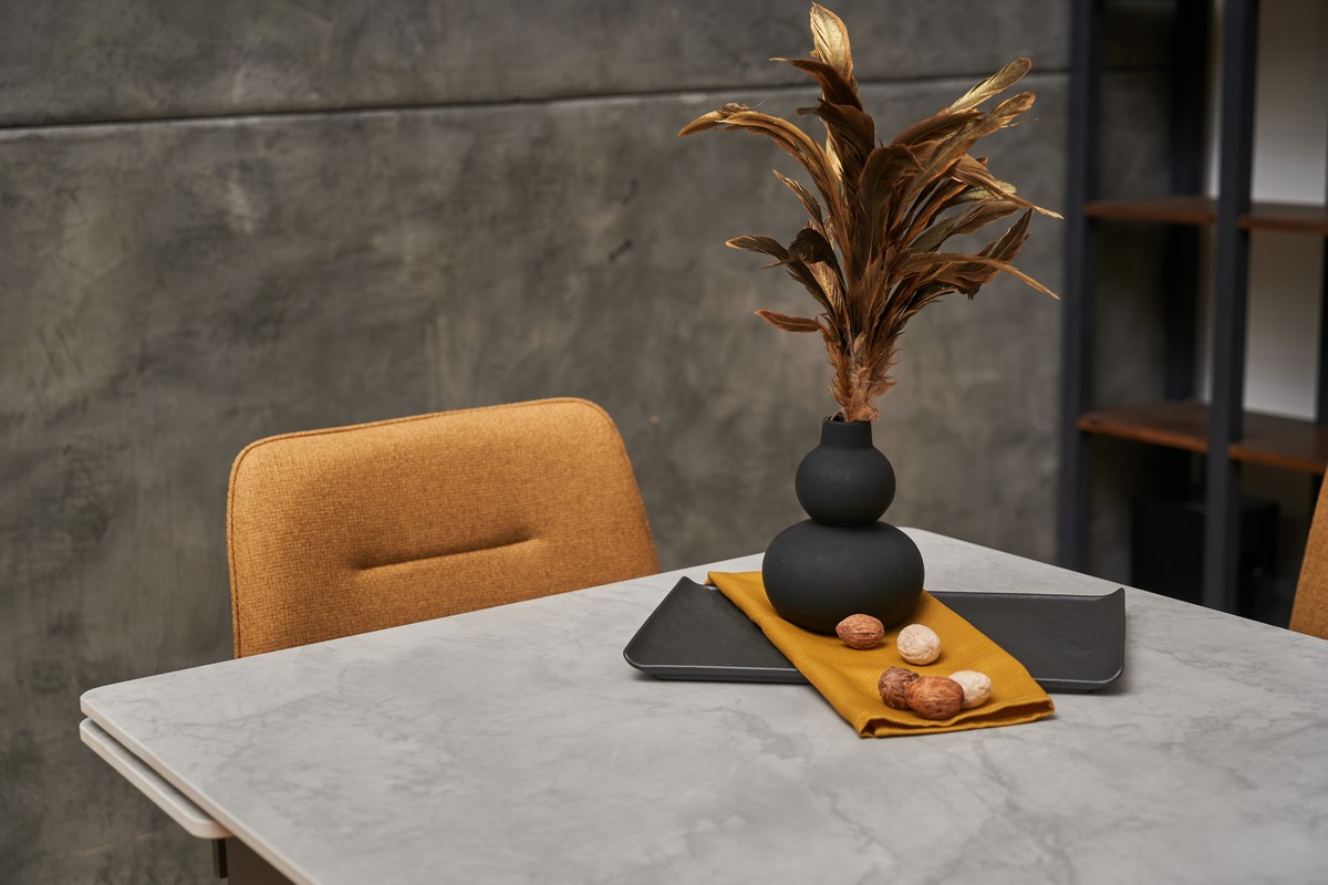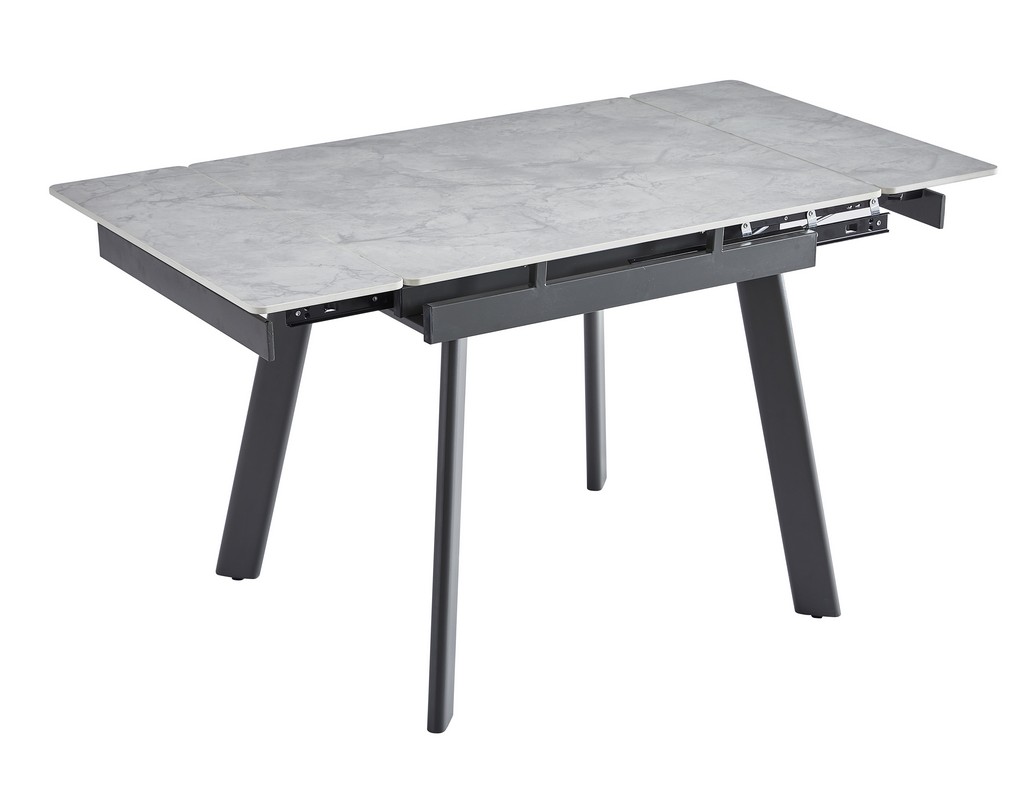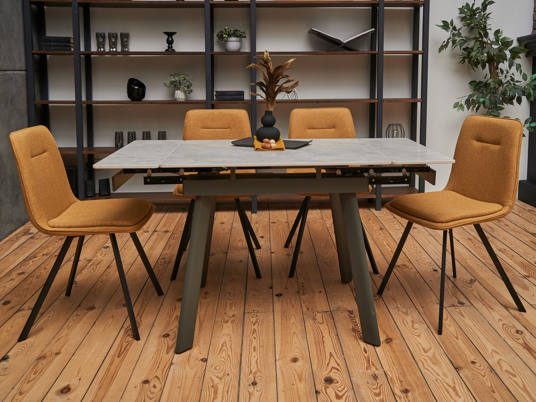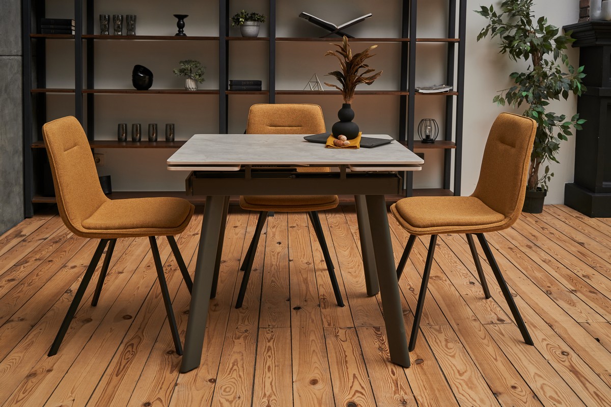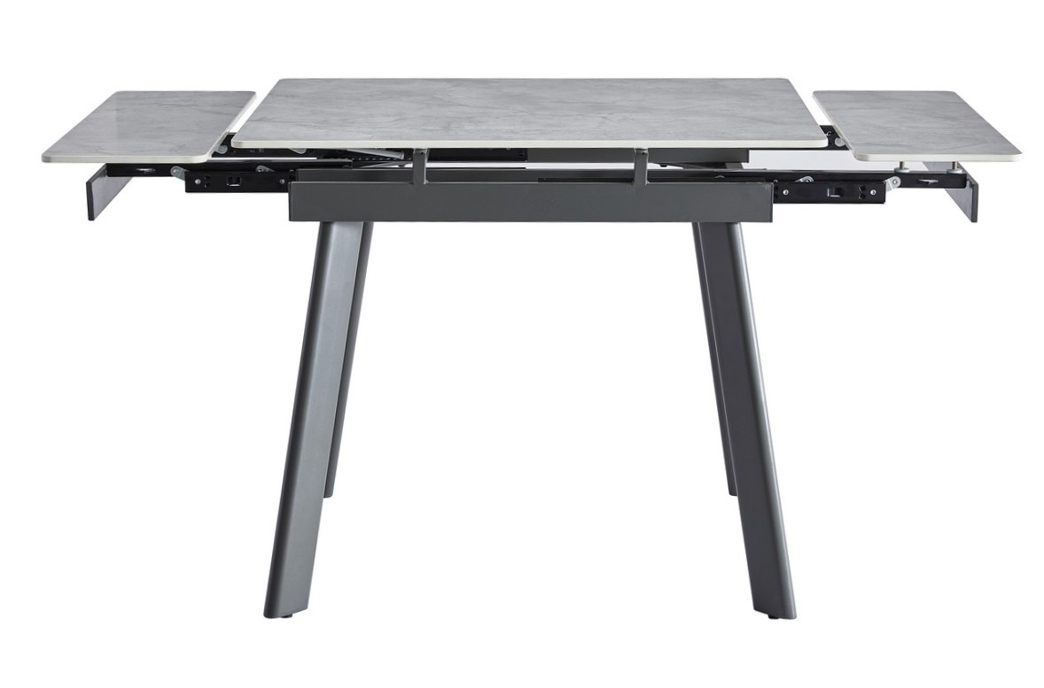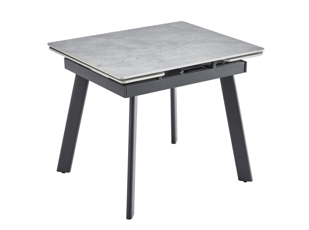 Керамічний стіл TM-80 у кольорі вера грей — це стильне та практичне рішення для сучасної кухні чи їдальні. Його стільниця виготовлена з матової кераміки, що вирізняється стійкістю до подряпин, температурних перепадів та легкістю у догляді. Прямокутна форма та компактні розміри (90×75 см) ідеально підходять для щоденного використання, а завдяки боковому механізму розкладки стіл можна швидко розширити до 140 см, забезпечуючи комфортне розміщення більшої кількості гостей. Міцна основа з фарбованого металу додає конструкції стабільності та довговічності.