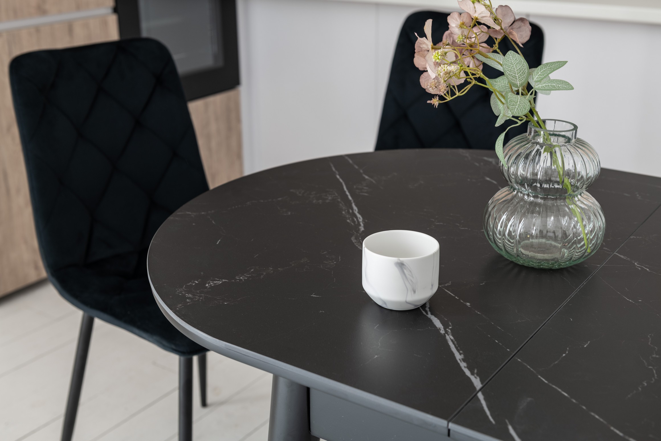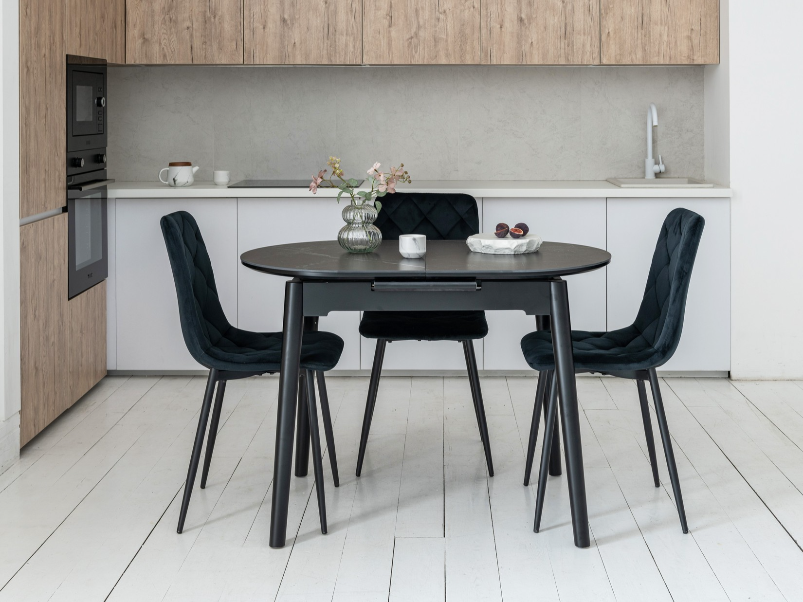 Обідній стіл у кольорі Чорний онікс привнесе стиль та вишуканість у ваш інтер'єр. Його овальна форма надає столу вишуканий вигляд, а чорний онікс додає елегантності та розкоші.