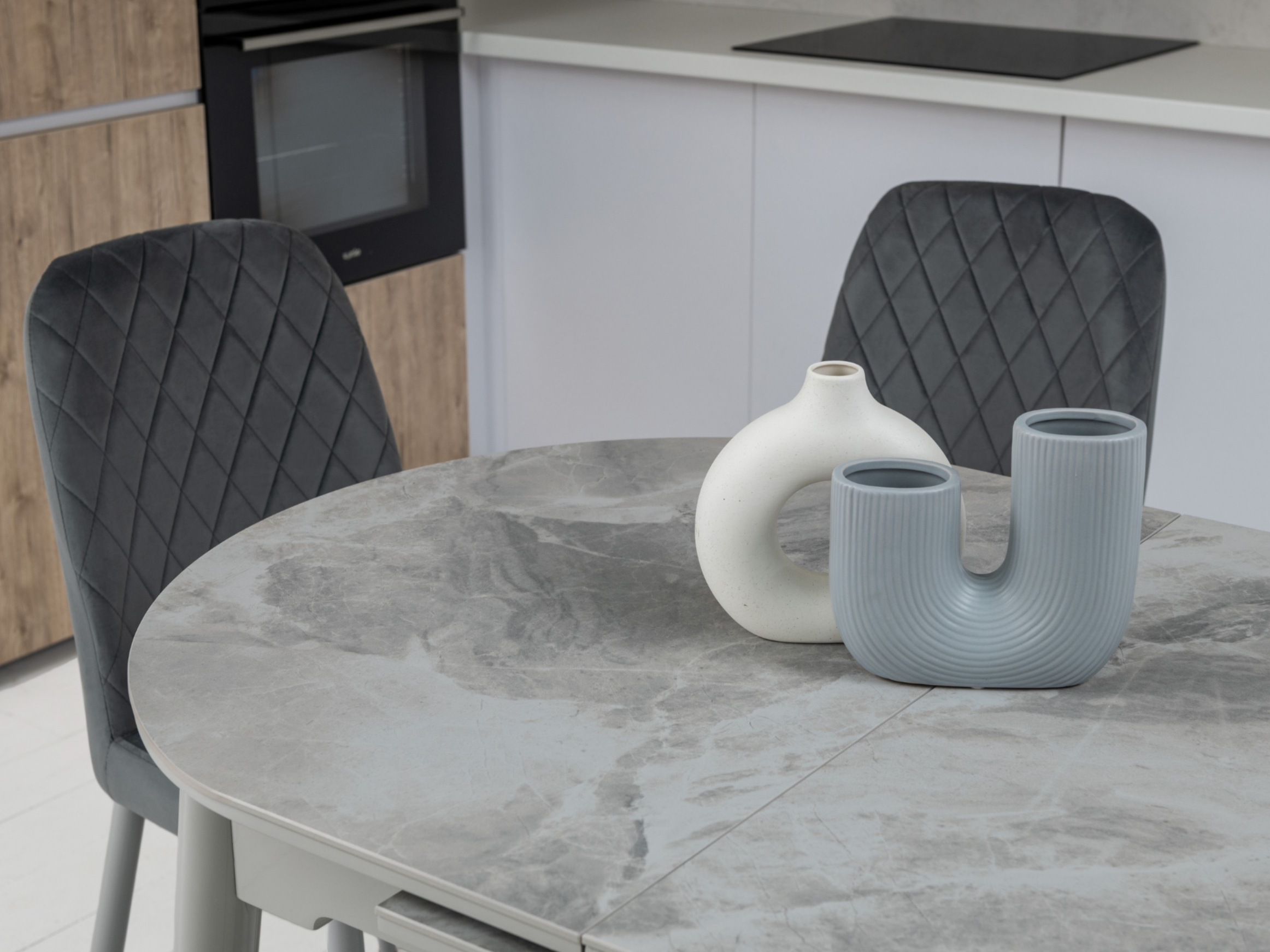 Завдяки своїй компактній овальній формі і розмірам - 110 см у довжину і 75 см у ширину, цей стіл ідеально підходить для маленьких їдалень. Розкладна конструкція з максимальною довжиною стільниці 140 см робить його ще більш практичним для різних подій - від сімейних обідів до вечірок з друзями.