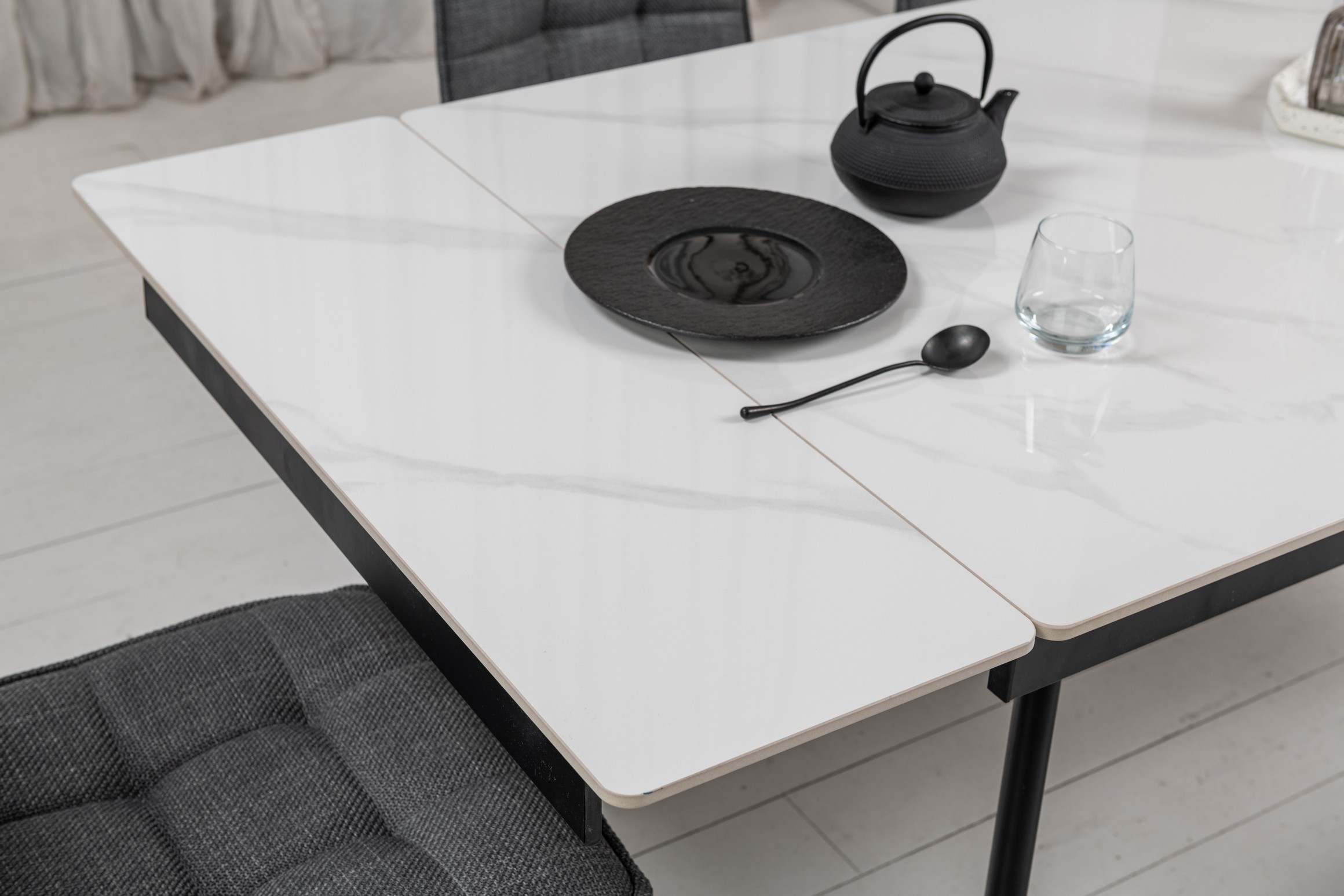 Керамічний стіл TM-76 калакатта мармур (сіра кераміка) + чорний