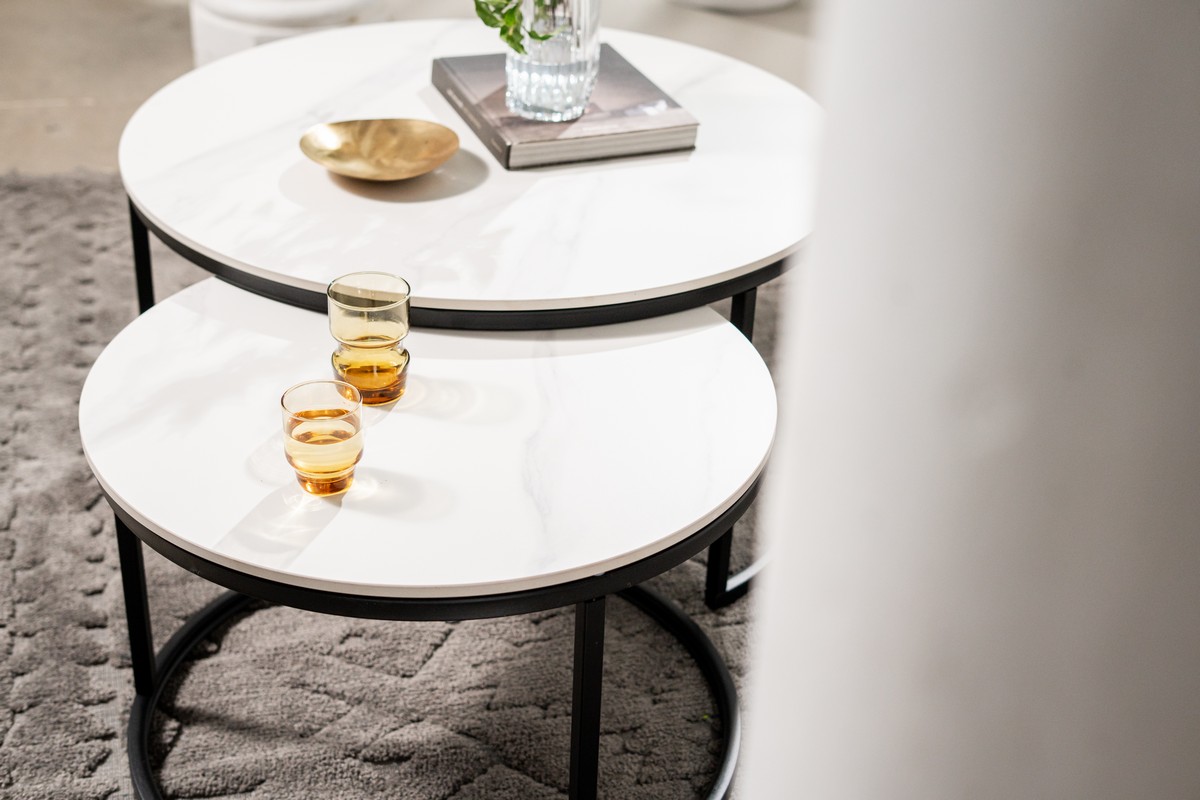 Комплект журнальних столів CT-35 Лоренза в кольорі "каса вайт" — це стильне та сучасне рішення для вашого інтер'єру. Набір включає два круглих столи різного діаметра, що дозволяє використовувати їх як разом, так і окремо, залежно від ваших потреб і простору.