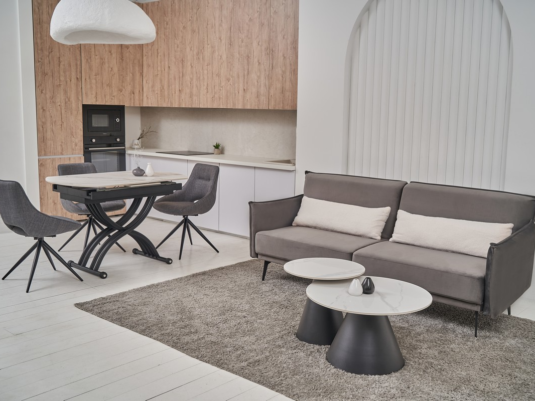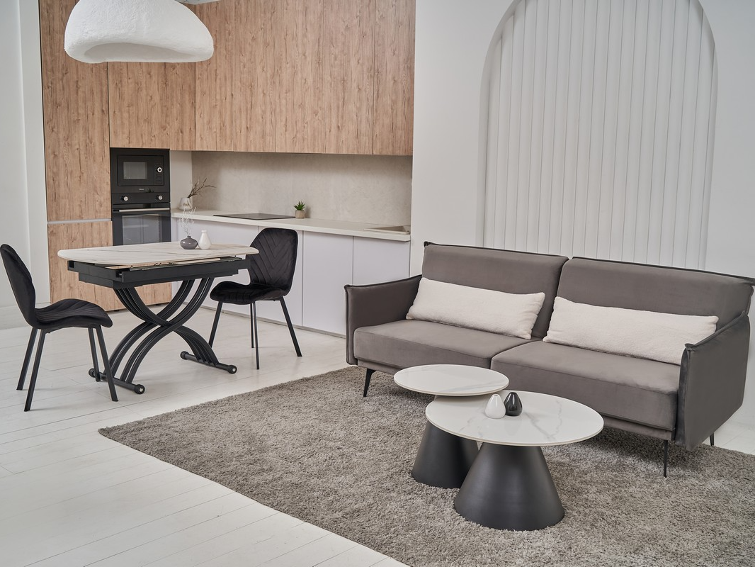 В мінімалістичному інтер'єрі круглі столики виглядають стильно та органічно. Вони додають відчуття простору та гармонії, зберігаючи при цьому мінімалістичний стиль оформлення.