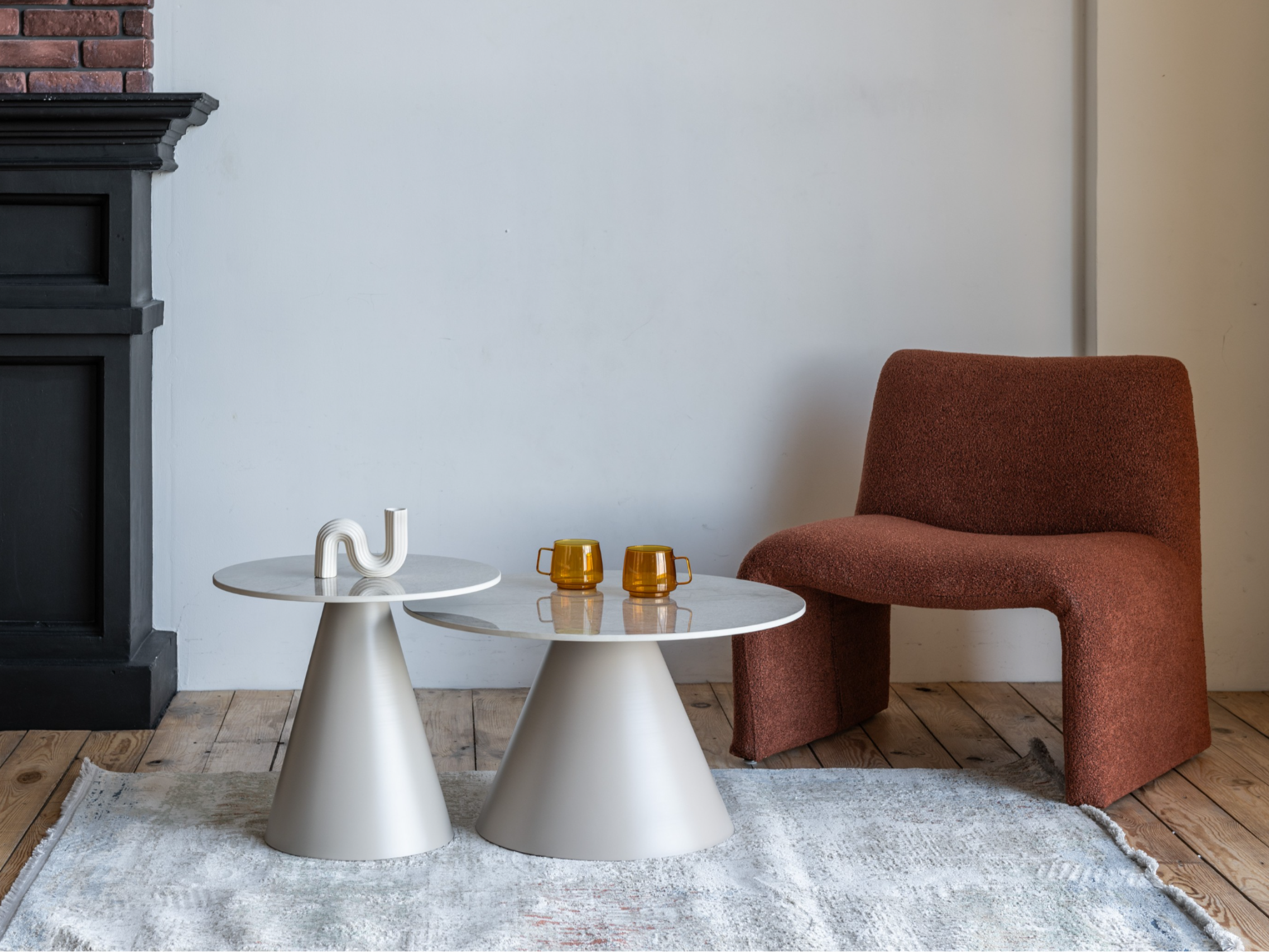 Круглі журнальні столики в кольорі білий мармур є стильним та елегантним доповненням до будь-якого інтер'єру. Вони можуть доповнити різні стилі оформлення і використовуватися в різних приміщеннях.