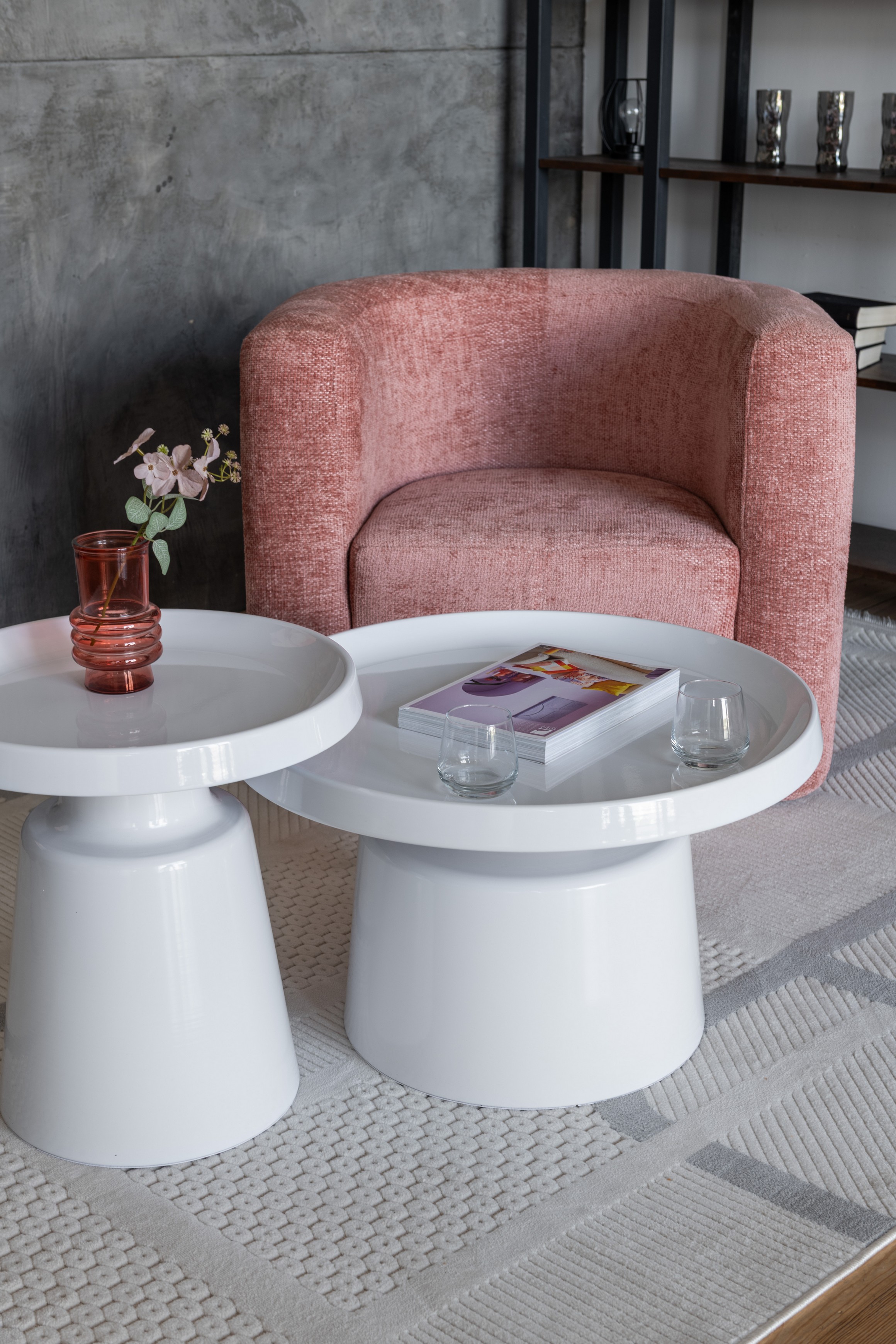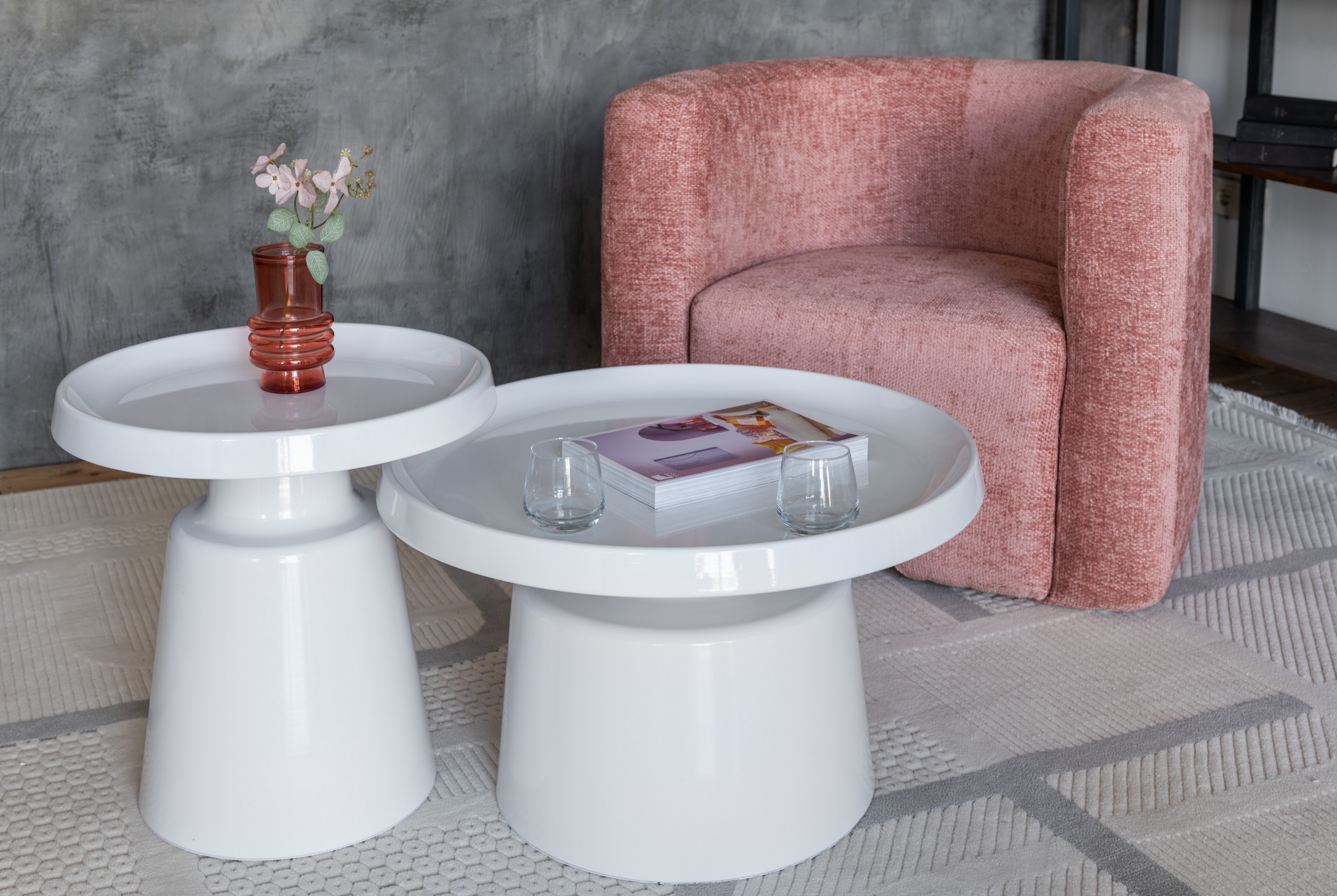 Комплект журнальних столів CT-45 Беніто білий + білий — це стильне та лаконічне рішення для сучасного інтер’єру. До комплекту входять два круглих столи різного розміру, які можна використовувати разом або окремо, створюючи зручну та функціональну композицію.
