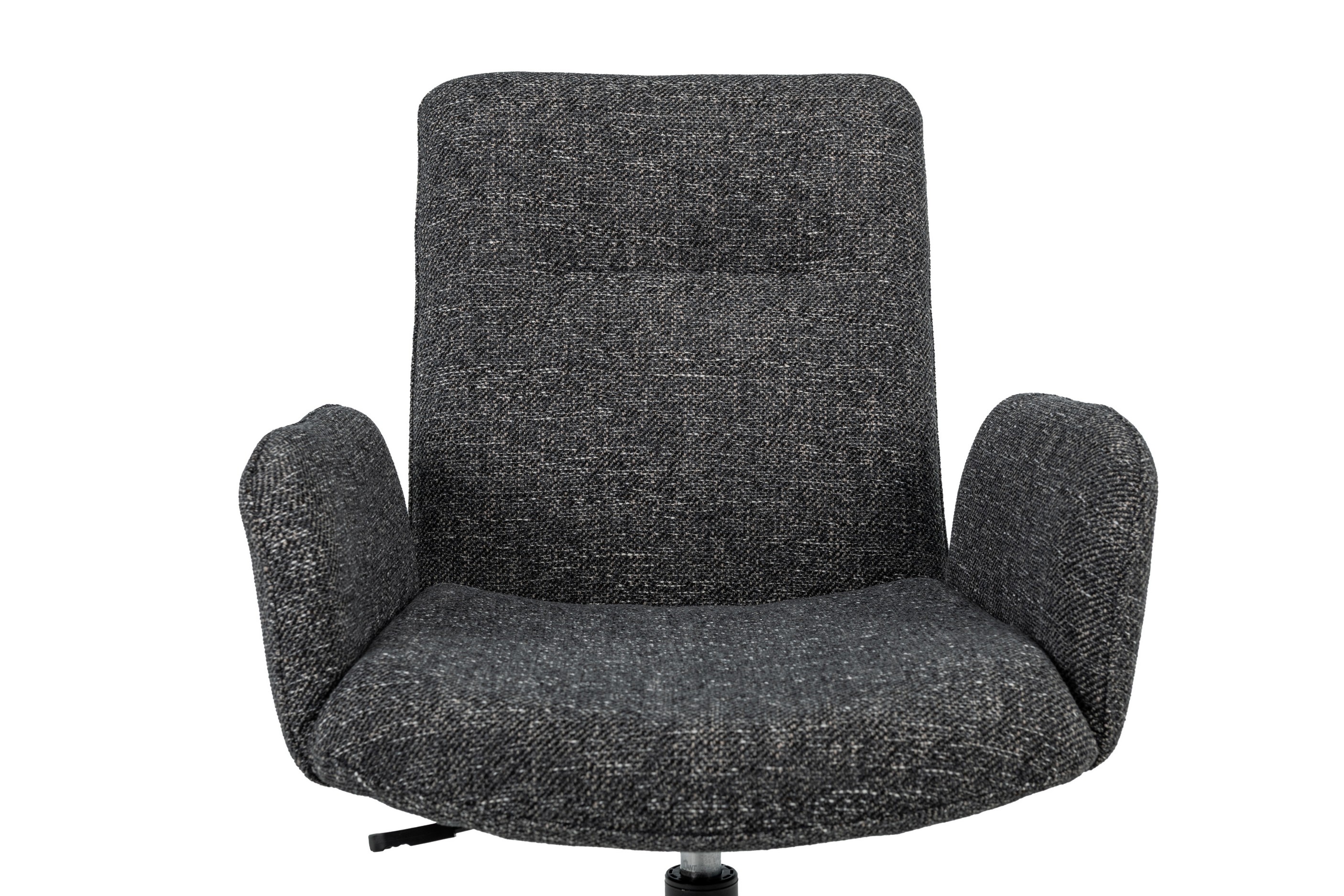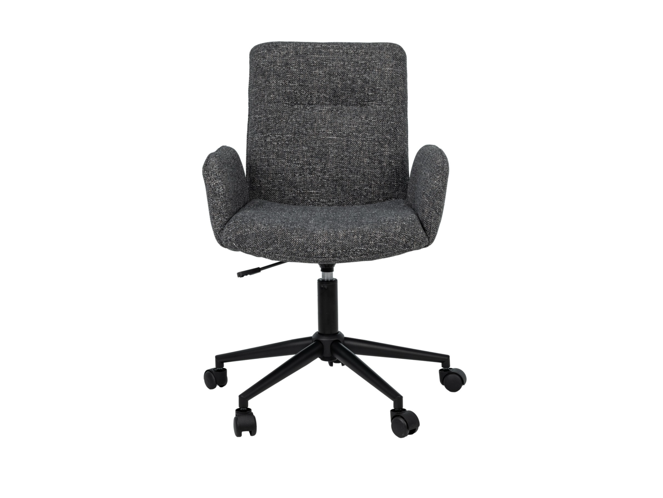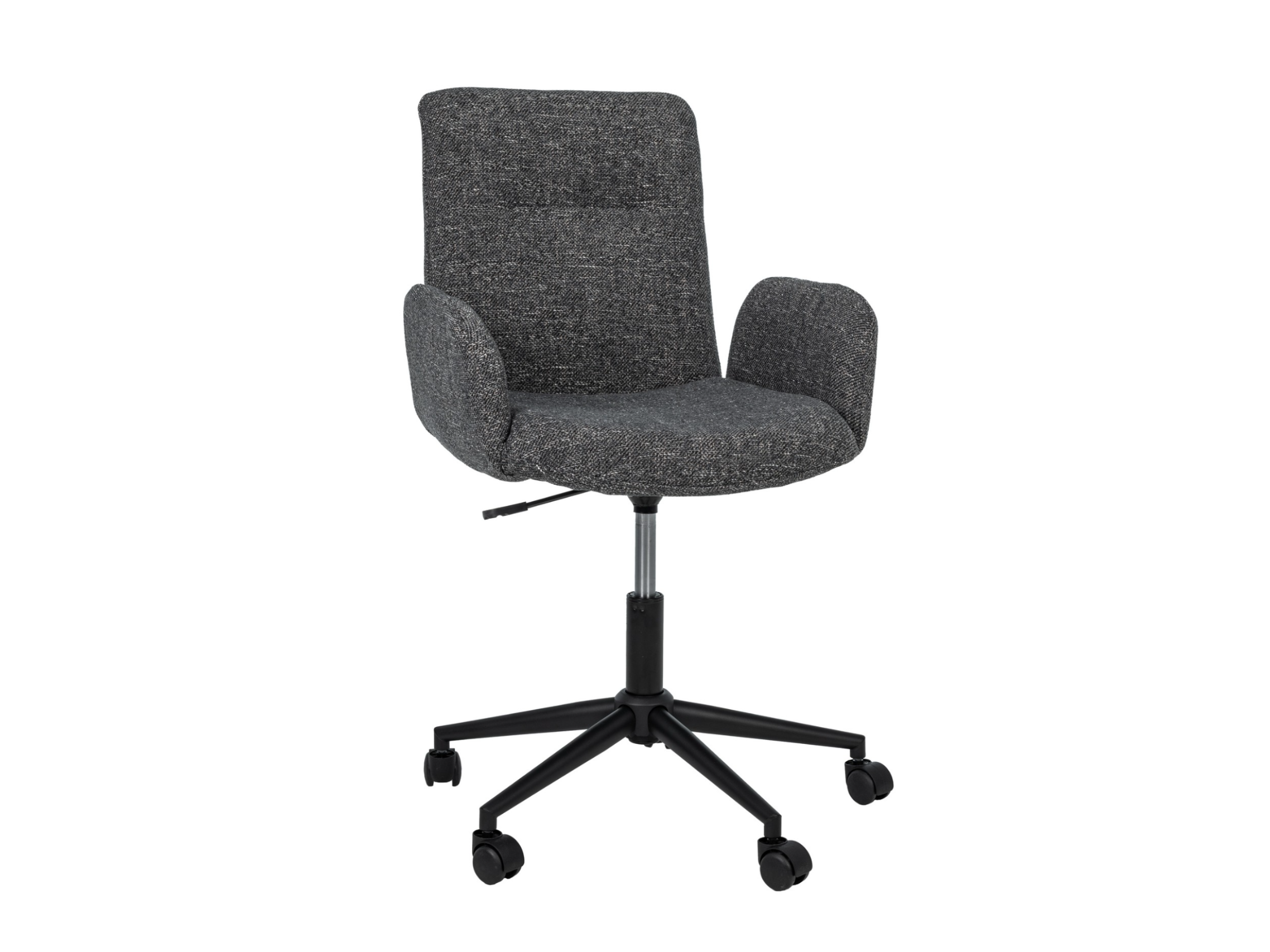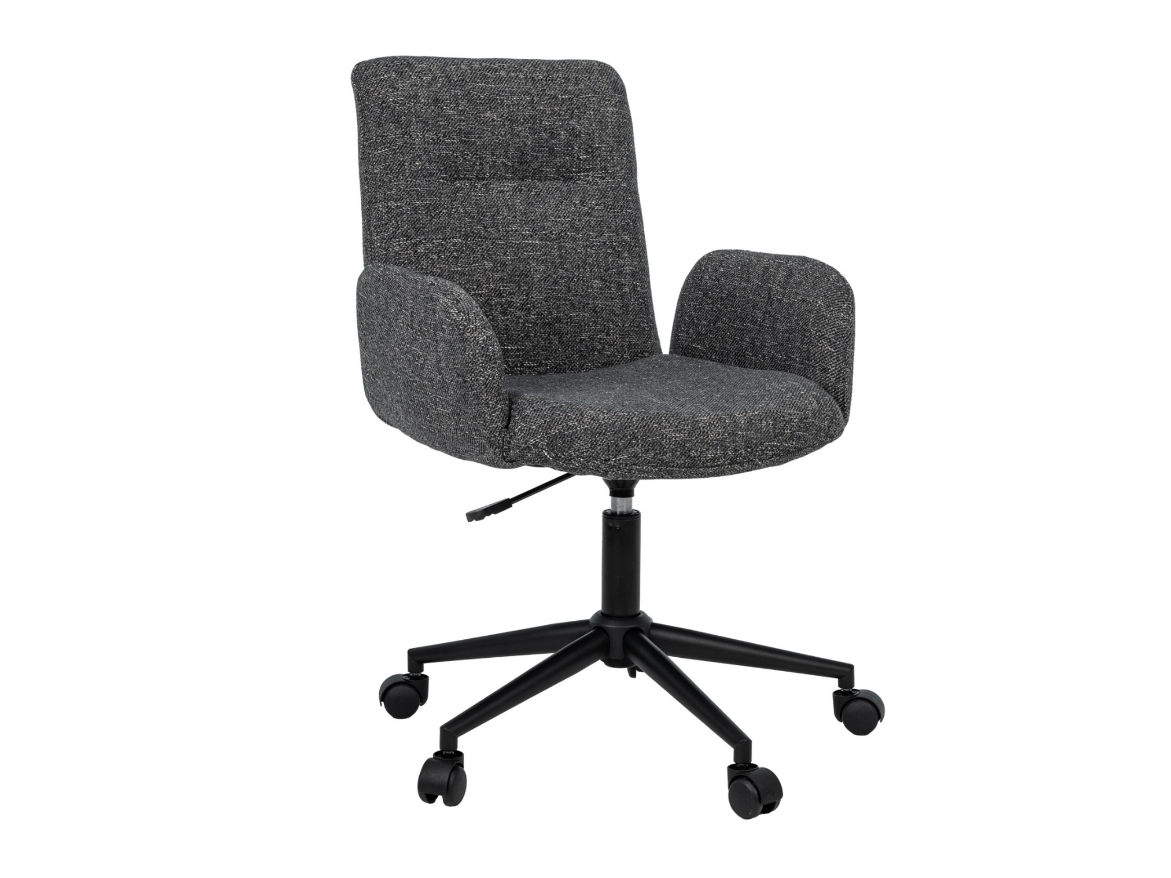 Оббивка з міцної та приємної на дотик рогожки забезпечує комфорт навіть під час тривалого сидіння, а фарбована металева основа додає надійності та стійкості конструкції. Крісло оснащене зручною механікою обертання на 360° та колесами для легкого переміщення по офісу або кабінету.