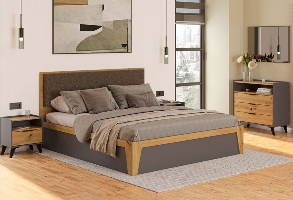 Ліжко Каміла (без вкладу) 160х200 см, дуб артизан, графіт / графіт