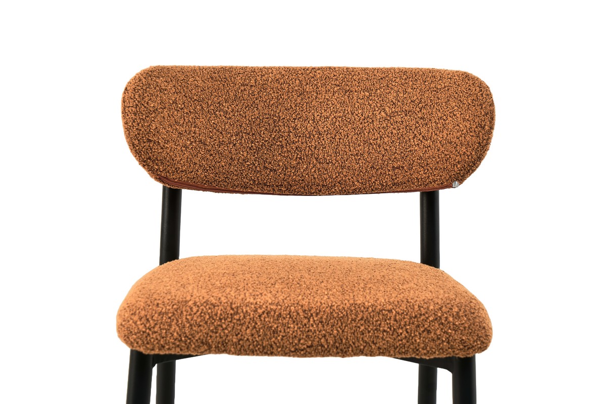 Обивка з букле відрізняється текстурною структурою, яка не лише приємна на дотик, але і додає стільцю візуальної розкоші. Матеріал відомий своєю міцністю і довговічністю, що робить стілець не лише стильним, але і практичним вибором для вашого дому.