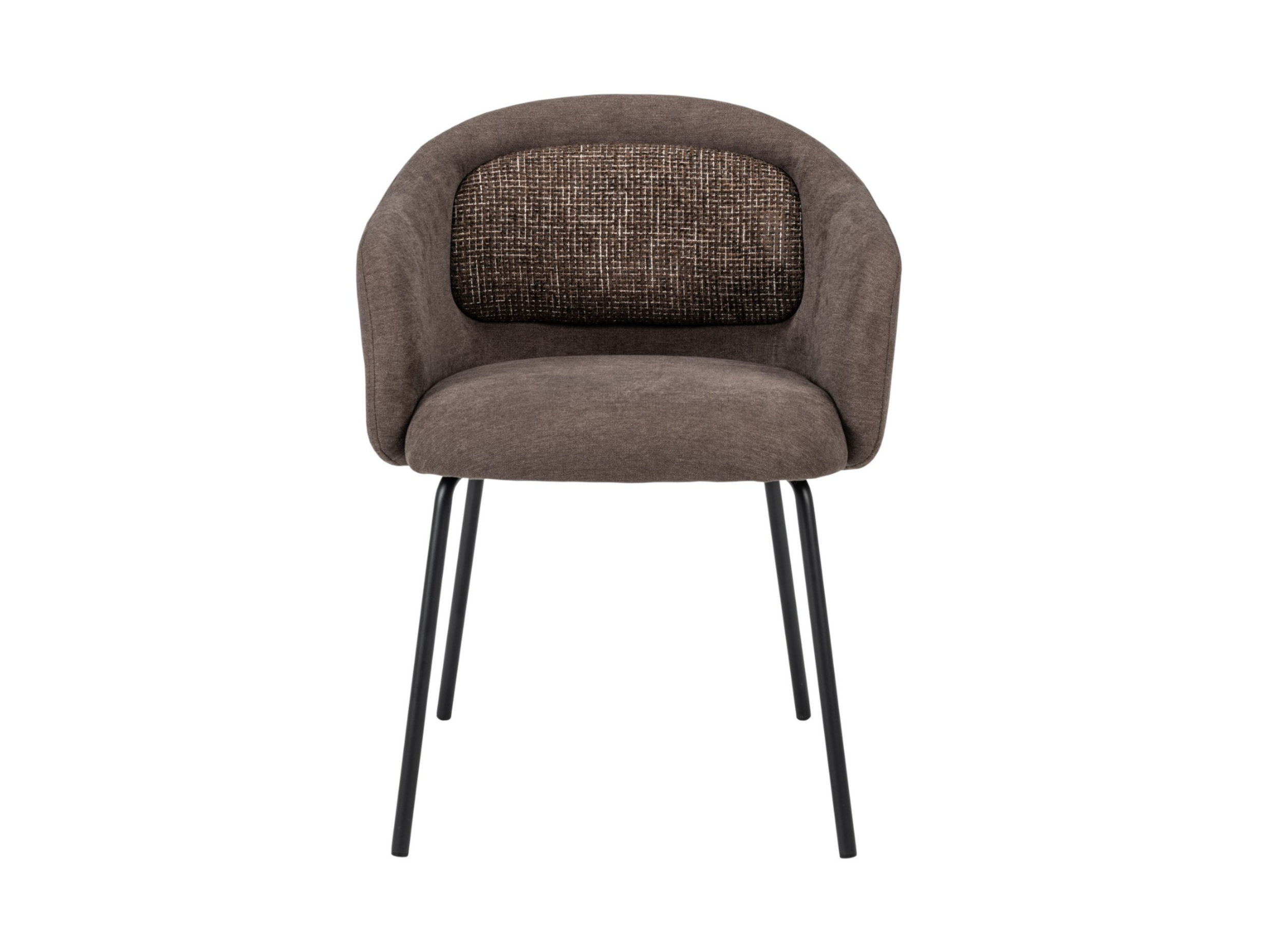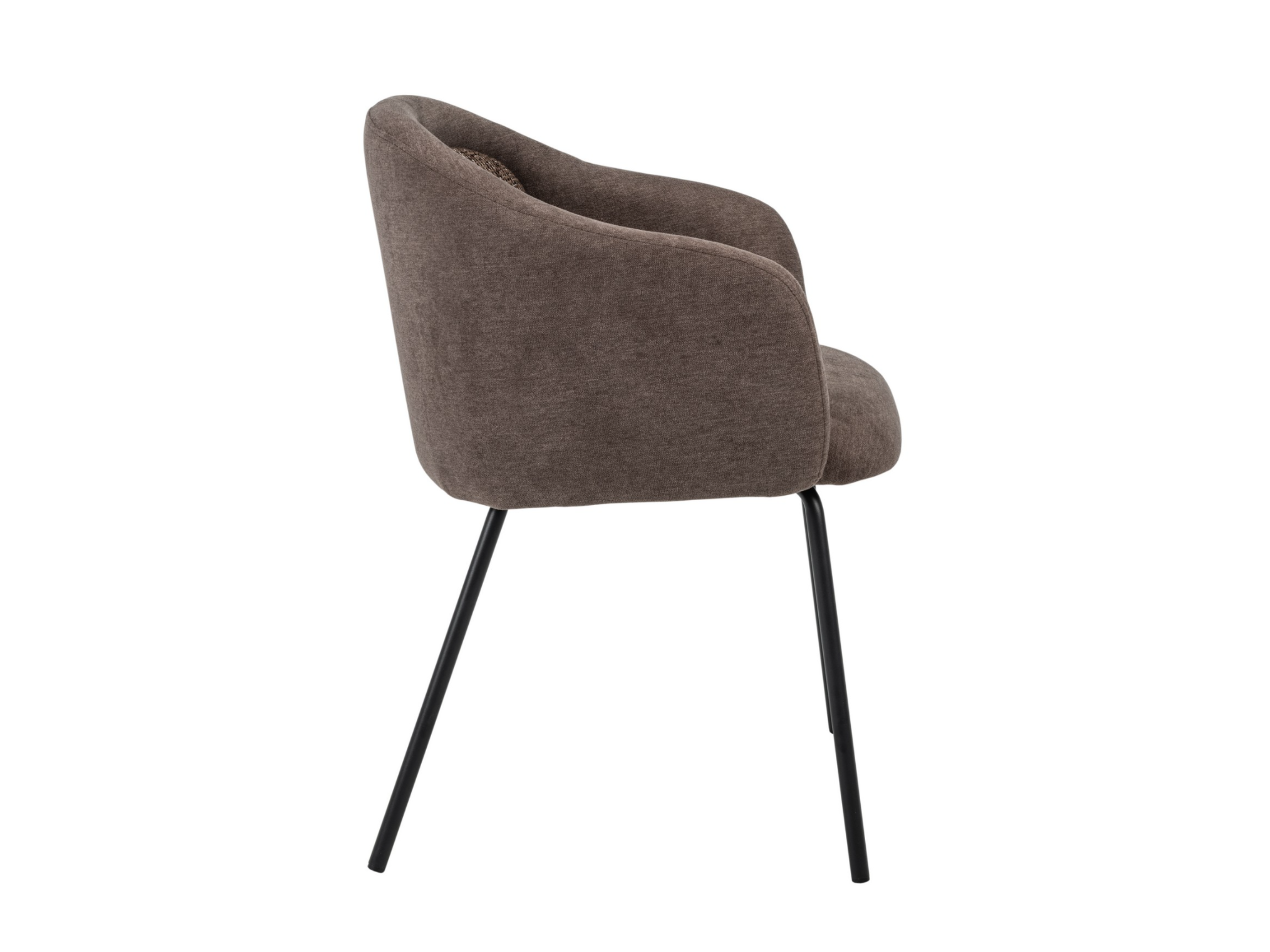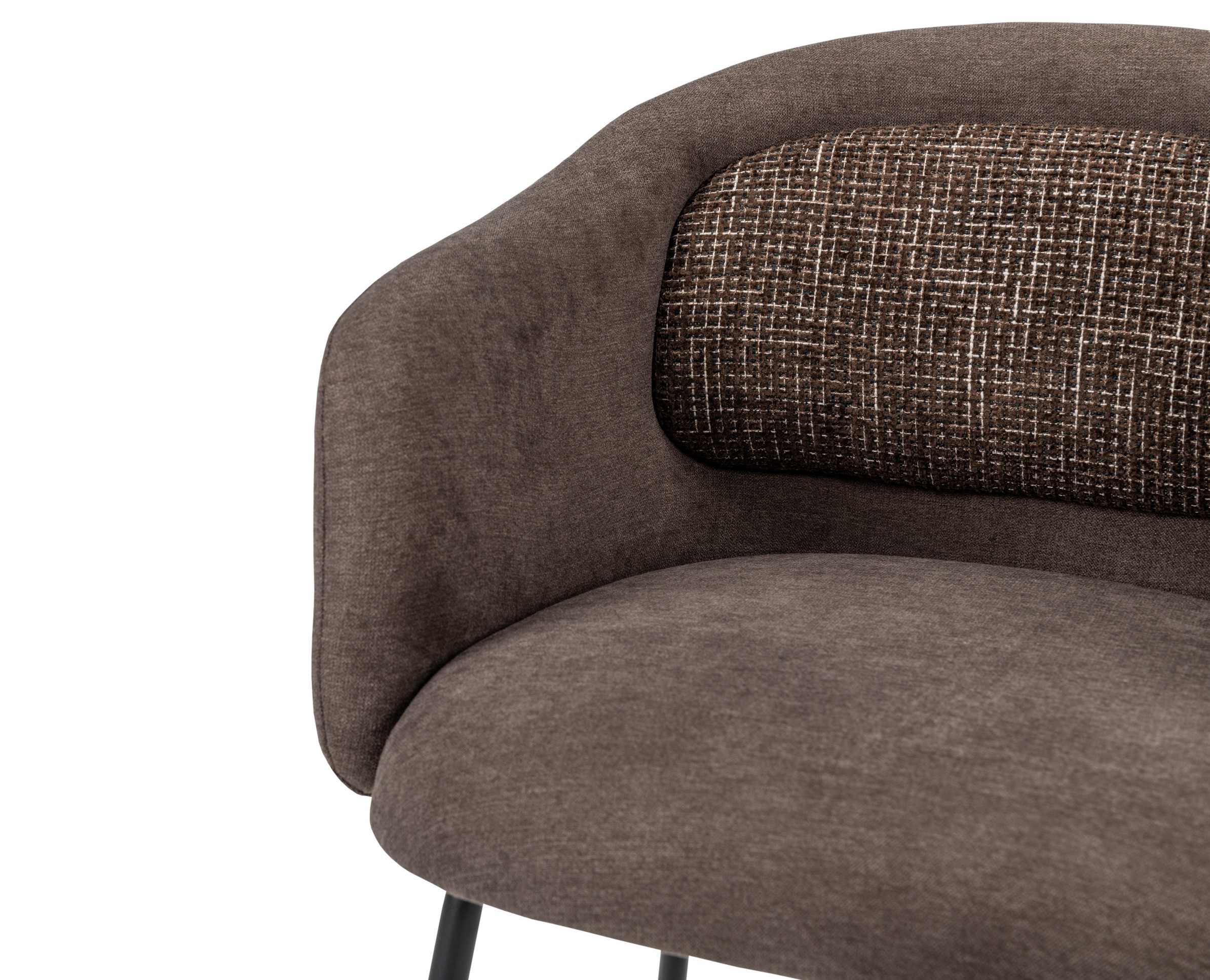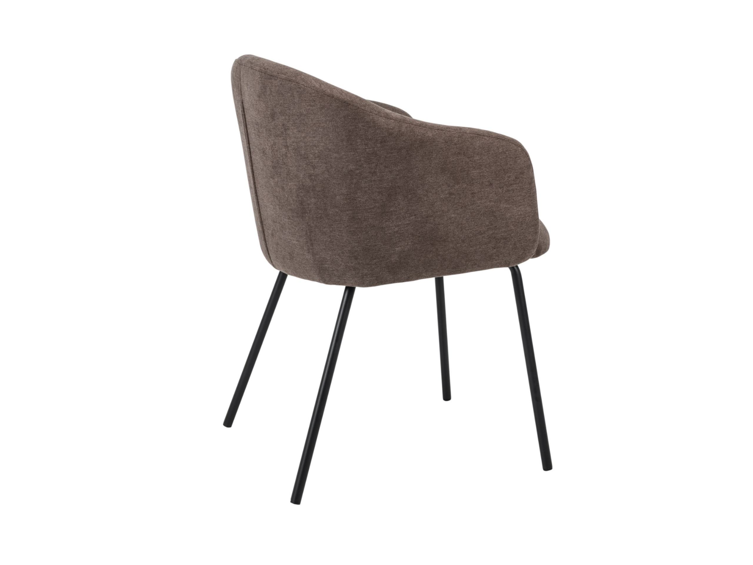 М’яка оббивка з шенілу приємна на дотик і забезпечує зручність навіть під час тривалого сидіння. Підлокітники додають додаткової підтримки, а фарбована металева основа гарантує надійність та стійкість конструкції.