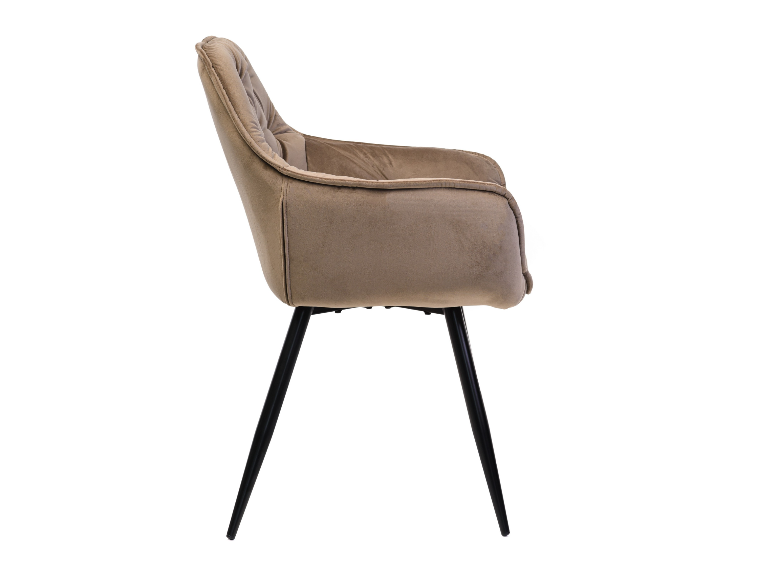 Стілець M-65 капучино велюр + чорний — це вишукане поєднання стильного дизайну, практичності та сучасних матеріалів. Його ніжний відтінок капучино в оббивці з м'якого велюру наповнює простір теплом і затишком, створюючи атмосферу гармонії. Завдяки текстурі велюру стілець не лише виглядає розкішно, але й приємний на дотик, забезпечуючи комфорт навіть під час тривалого сидіння.