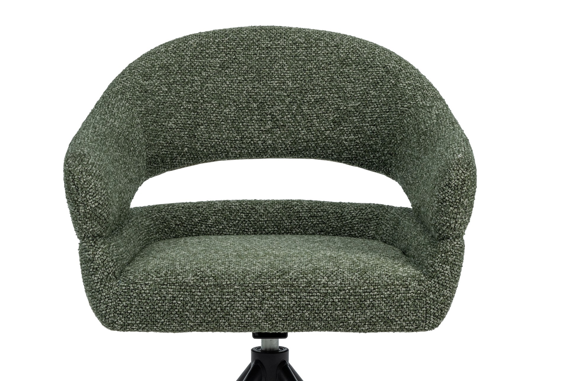 Стілець поворотний R-180 у відтінку зелений мох + чорний — це яскравий акцент, який поєднує сучасний дизайн та природну гармонію. Оббивка з м’якого букле у глибокому зеленому кольорі створює ефект природної свіжості та затишку, а водночас додає інтер’єру вишуканості й характеру.
