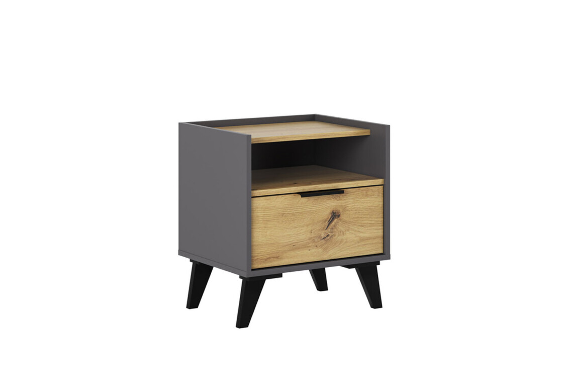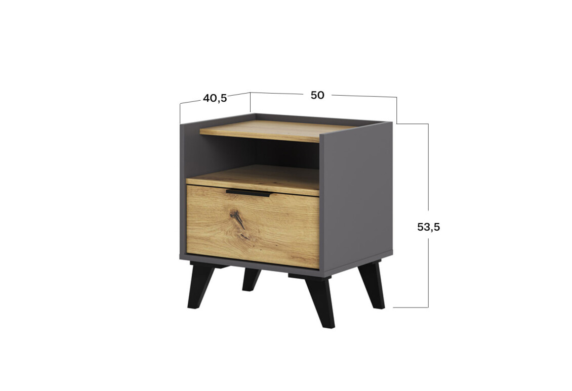 Тумба приліжкова Каміла з 1 шухлядою та полицею 50 см, дуб артизан, графіт / графіт