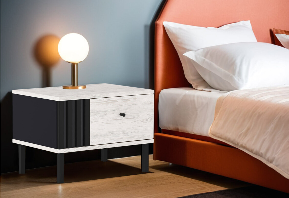 Тумба приліжкова Тео з шухлядою 50 см, декор зліва, біла 1