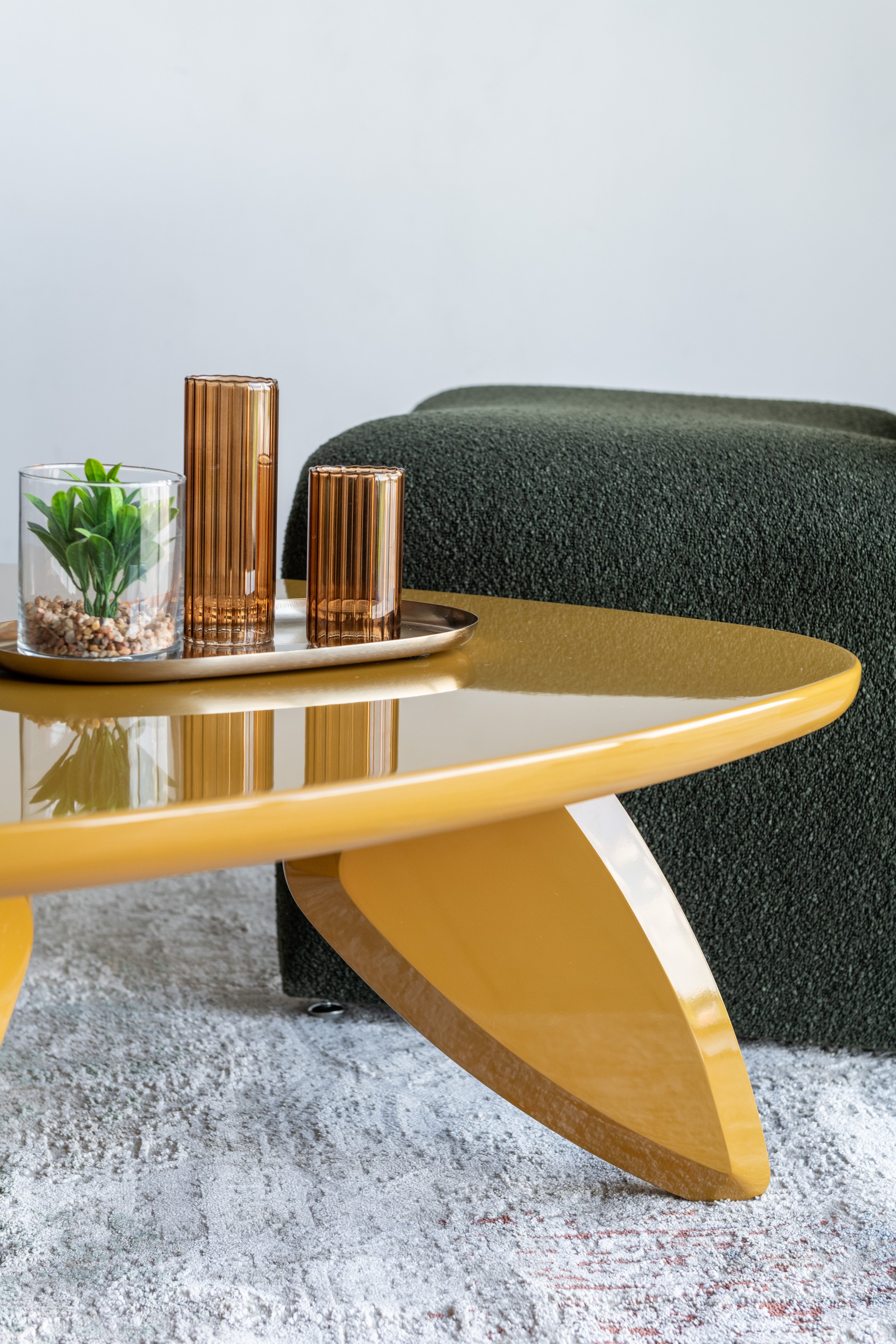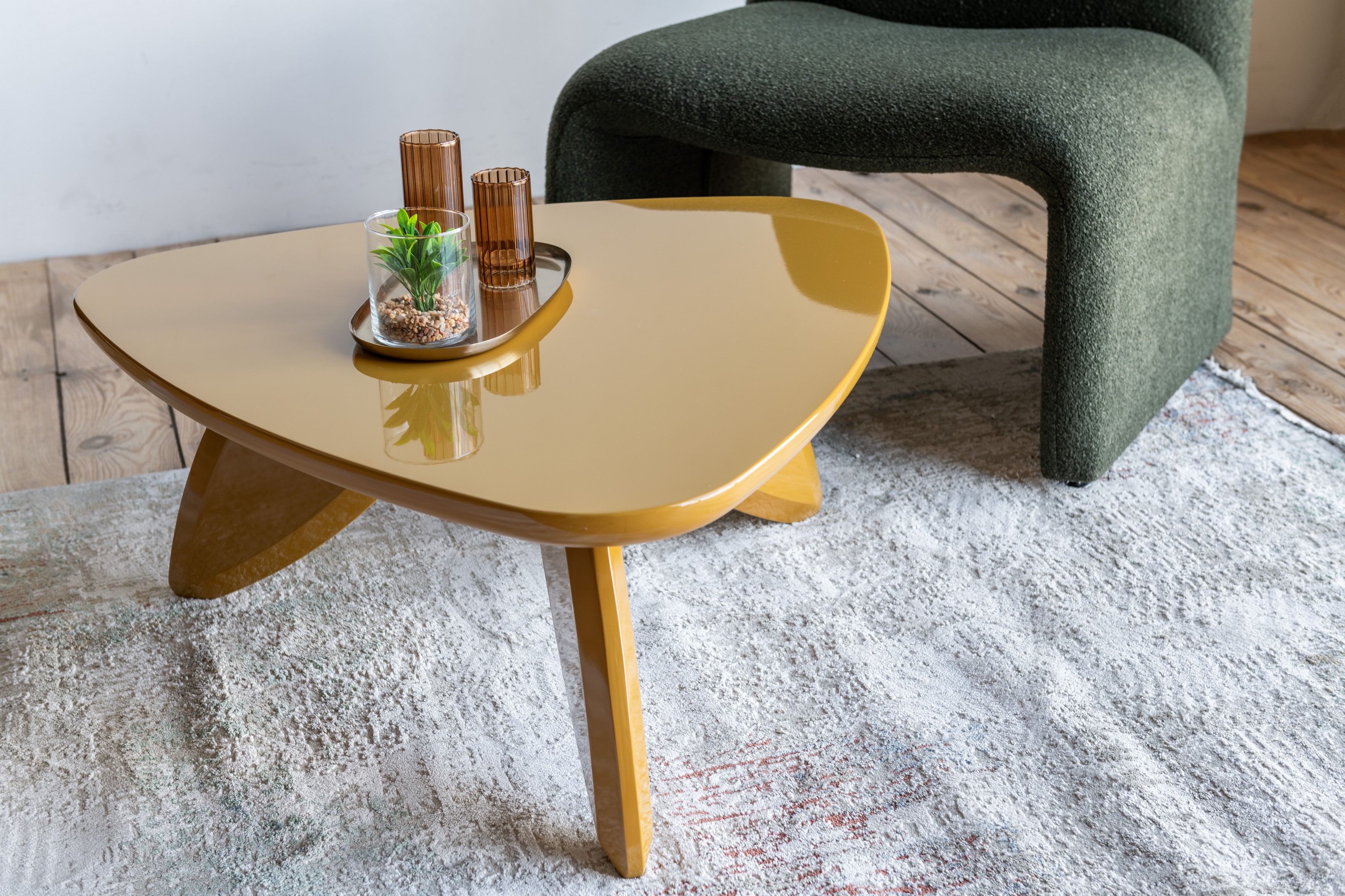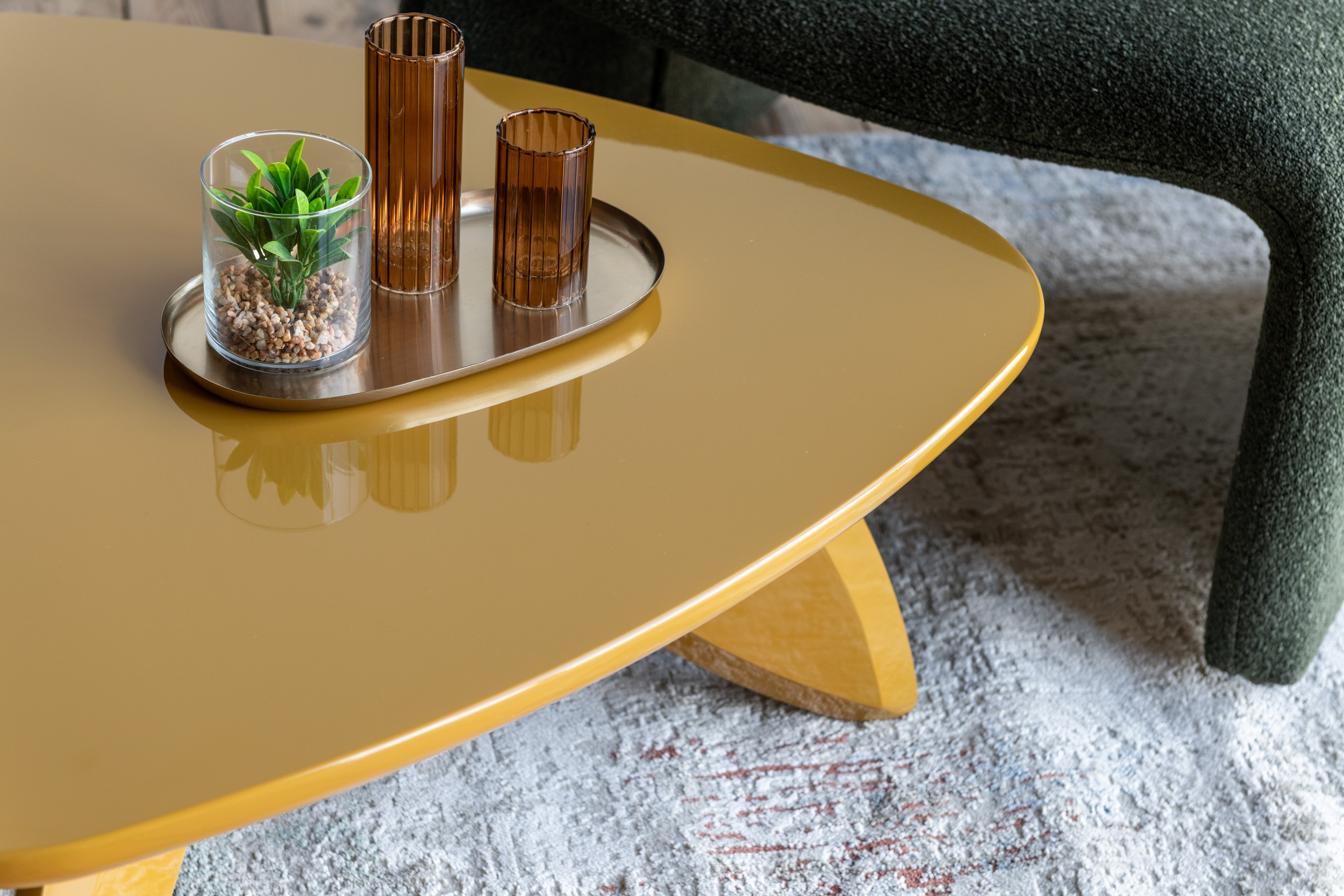Журнальний стіл Вітторіо C-300 в кольорі охра — це стильний та виразний акцент для сучасного інтер'єру. Його оригінальна трикутна форма додає динаміки та легкості простору, роблячи композицію кімнати більш живою та нестандартною.