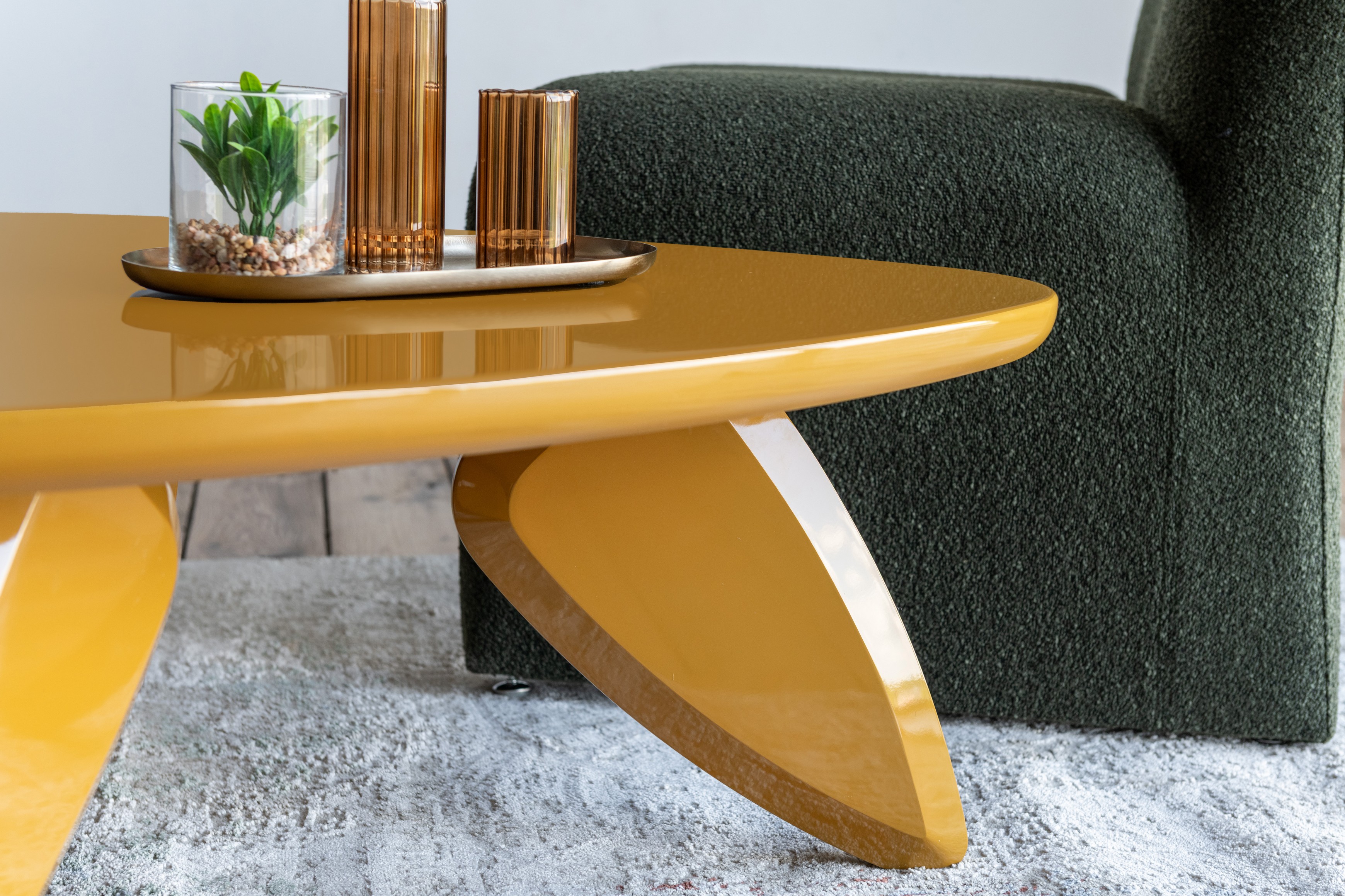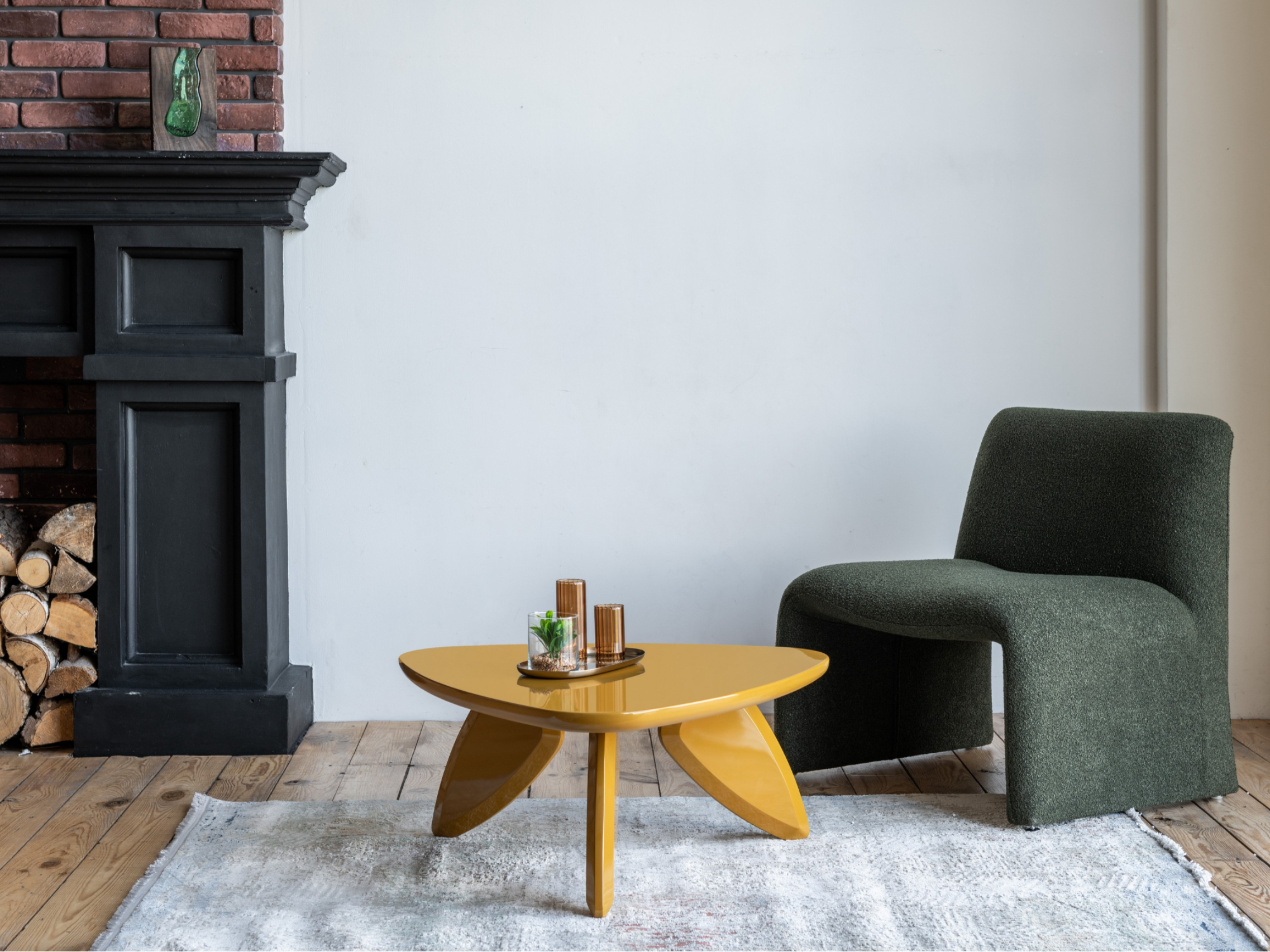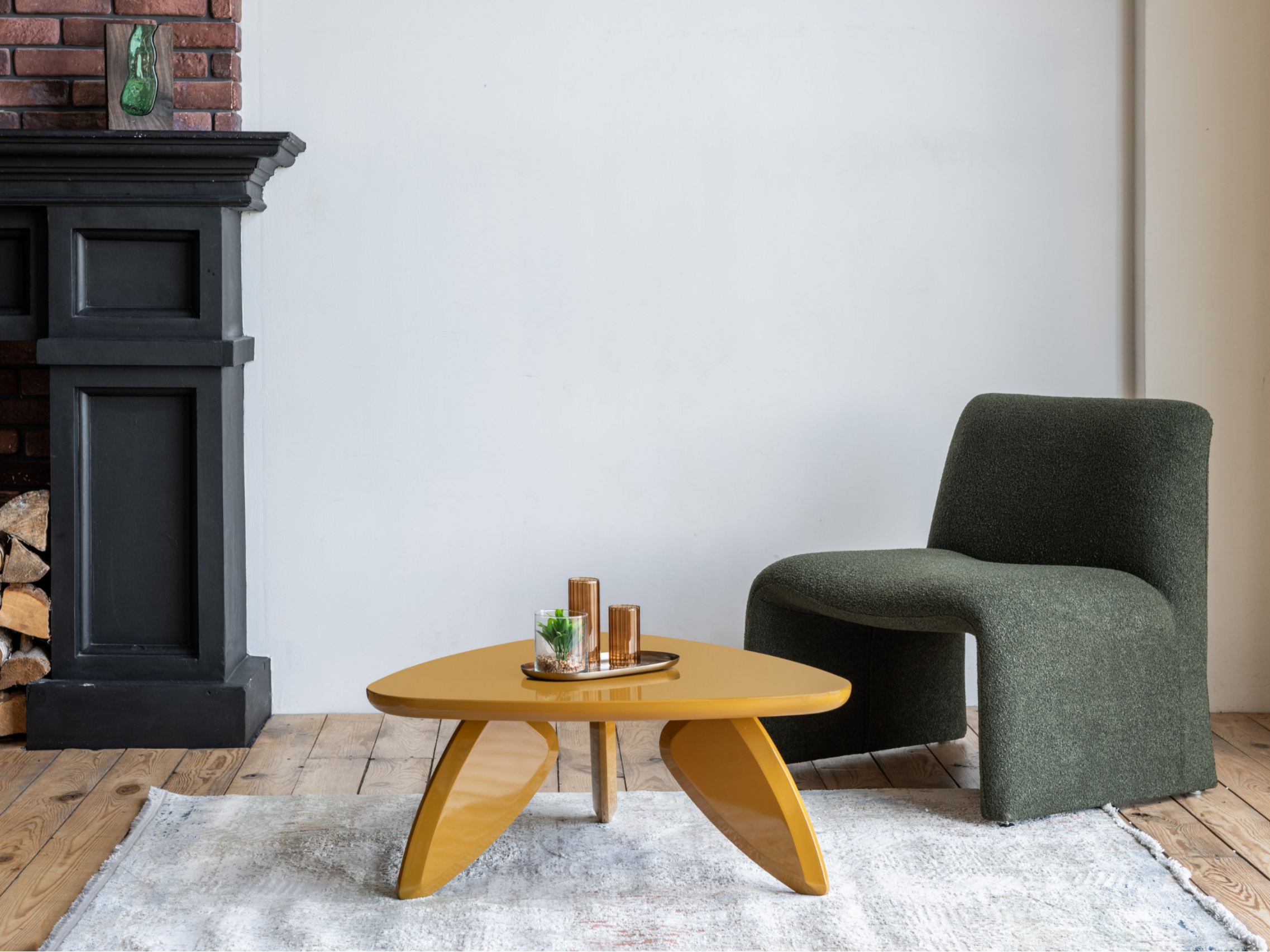 Журнальний стіл Вітторіо C-300 в кольорі охра — це стильний та виразний акцент для сучасного інтер'єру. Його оригінальна трикутна форма додає динаміки та легкості простору, роблячи композицію кімнати більш живою та нестандартною.